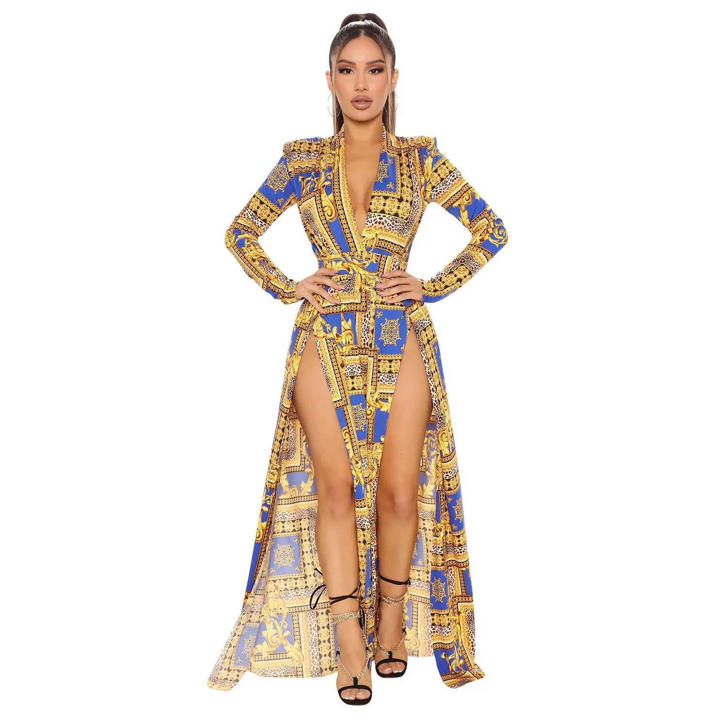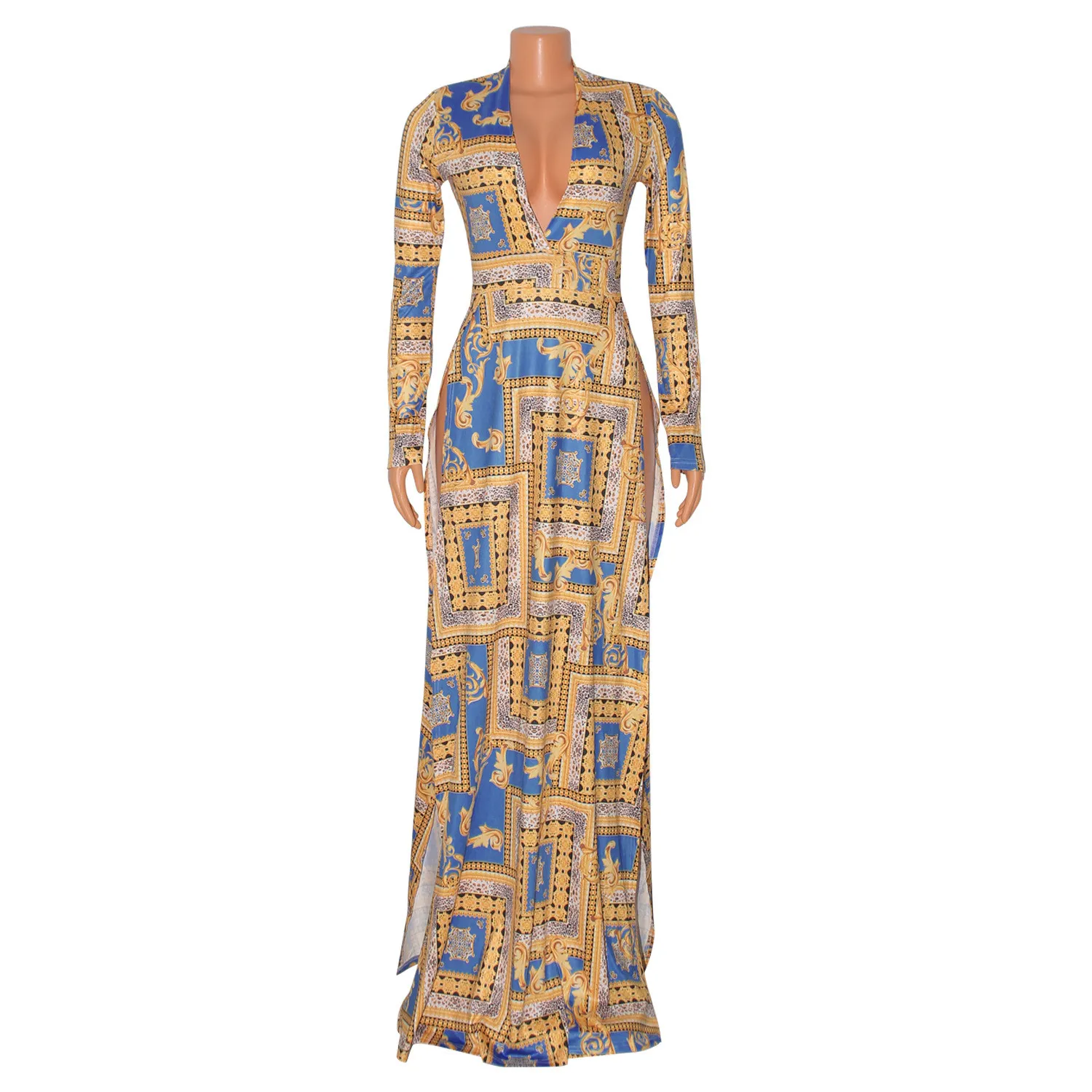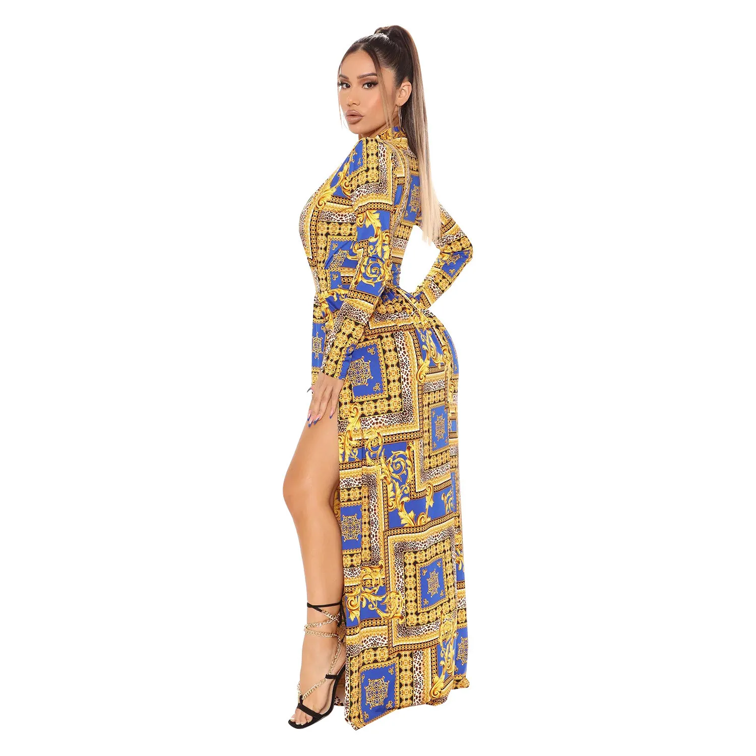 | Product Name | Autumn and winter women’s fashion sexy slit print long-sleeved dress |