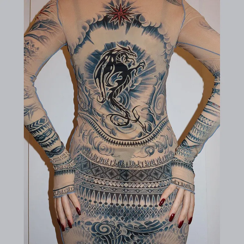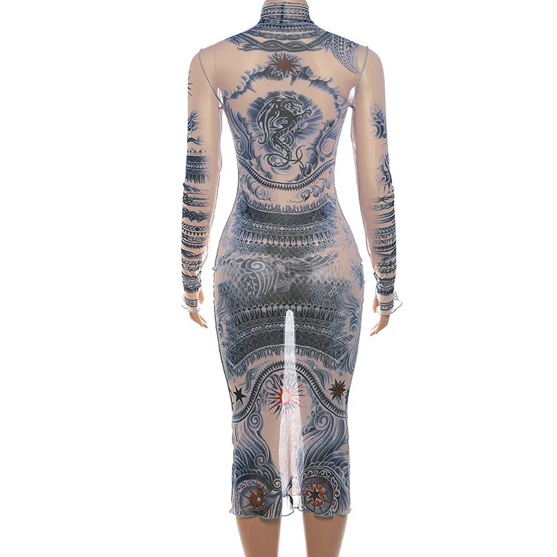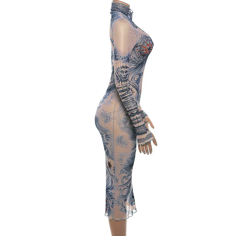 | Product Name | Autumn Women’s Sexy Long-Sleeved Mesh Printed High-Waist Slim Fit Short Dress |