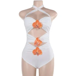 Women Cross Halter Neck Flower Summer Hollow Bodycon Mini Dress