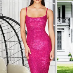 Summer Women’s Sleeveless Low Back Straps Sequin Party Dress