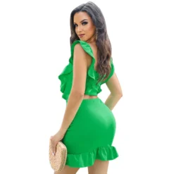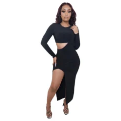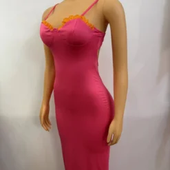 Women Summer Solid Sexy Suspender Backless Slit Bodycon Dress