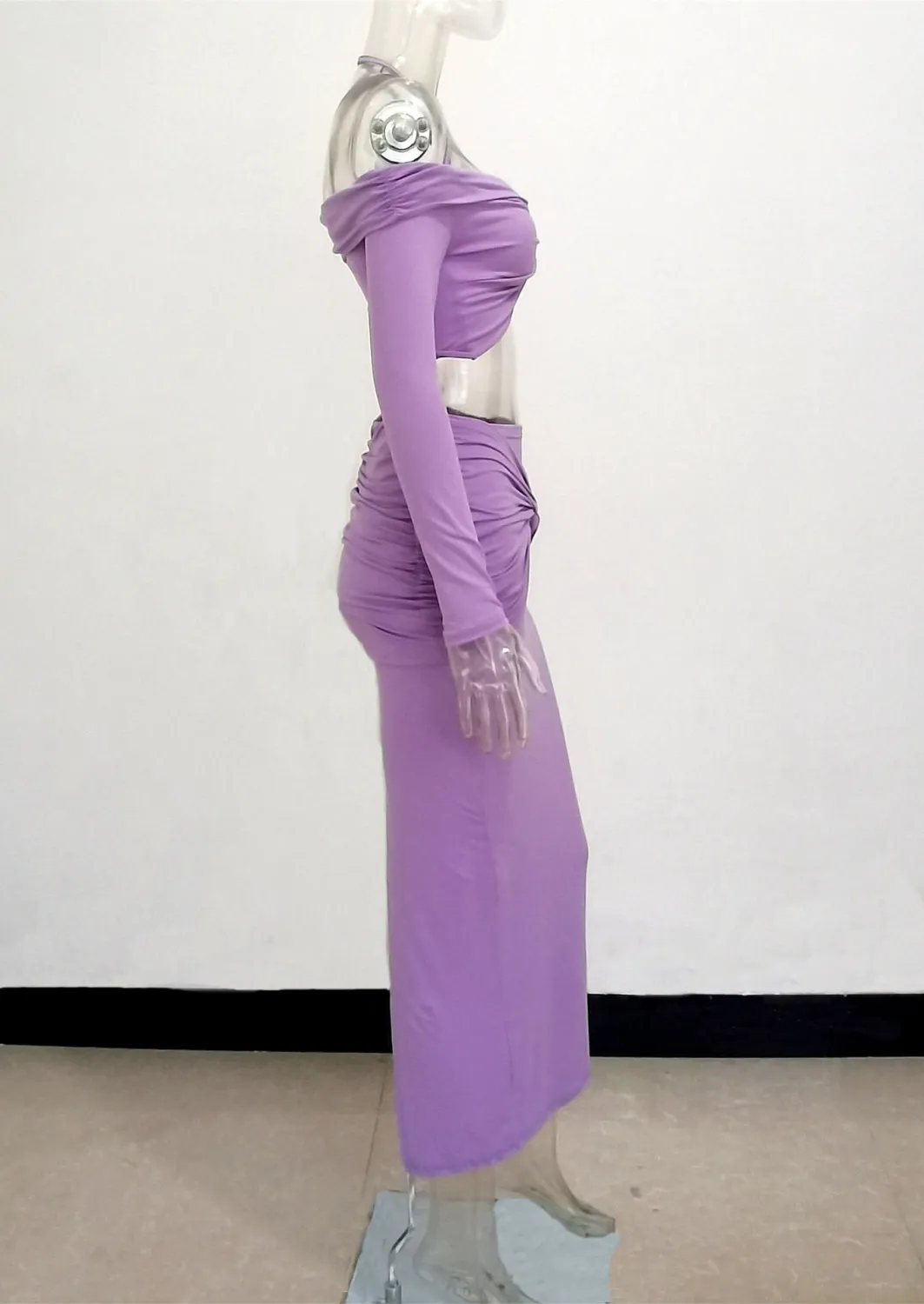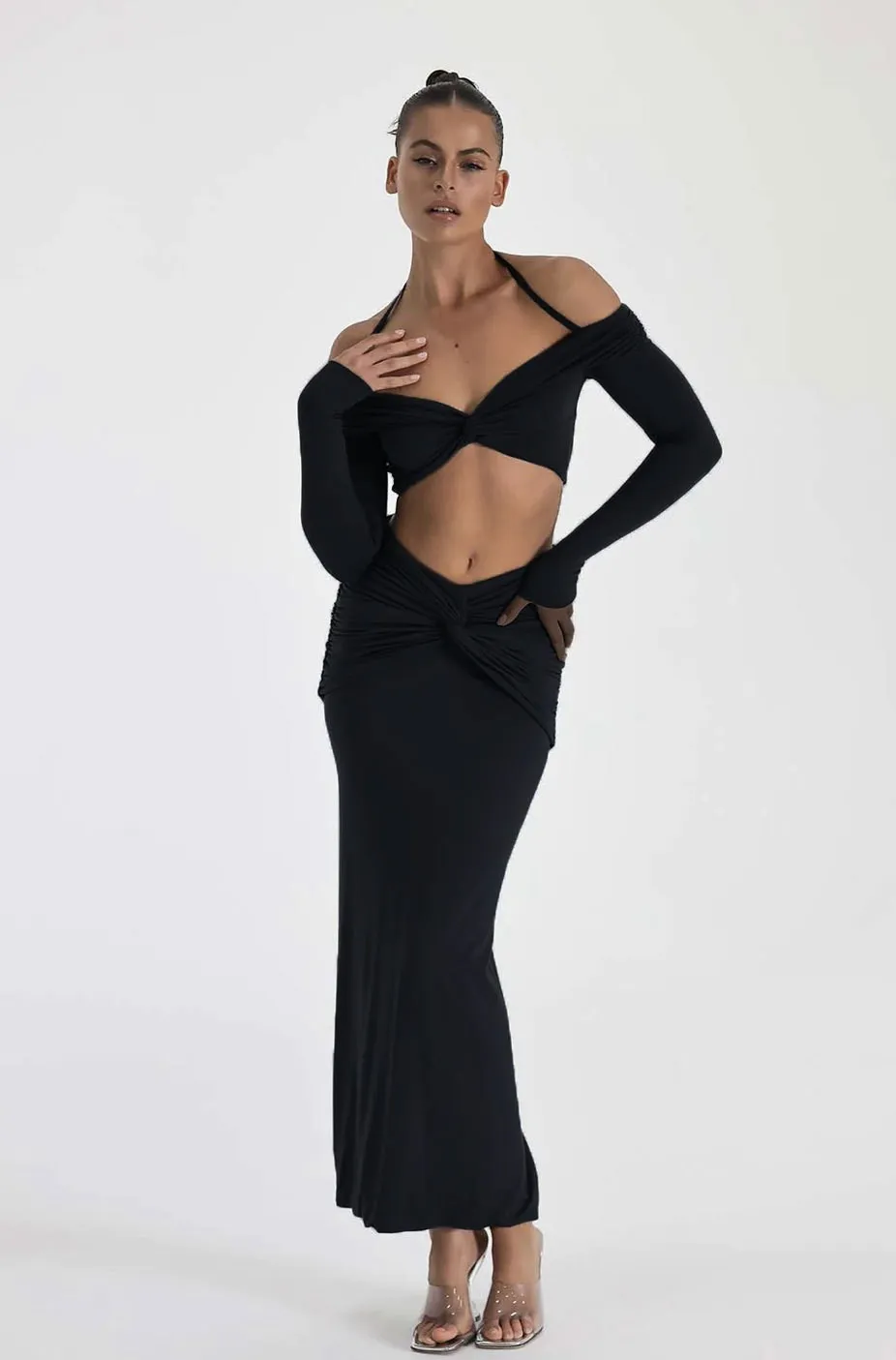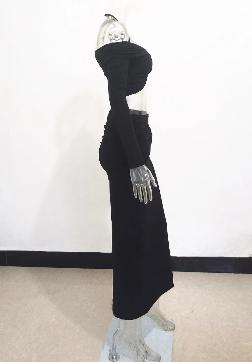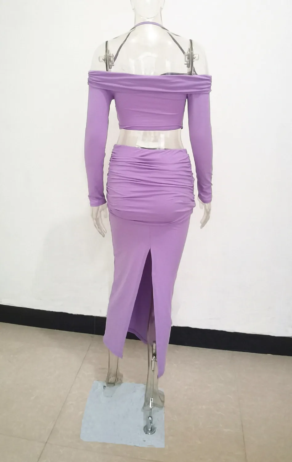 | Product Name | Fall Women Off Shoulder Halter Neck Long Sleeve Knot Crop Top+ Maxi Dress Two Piece |