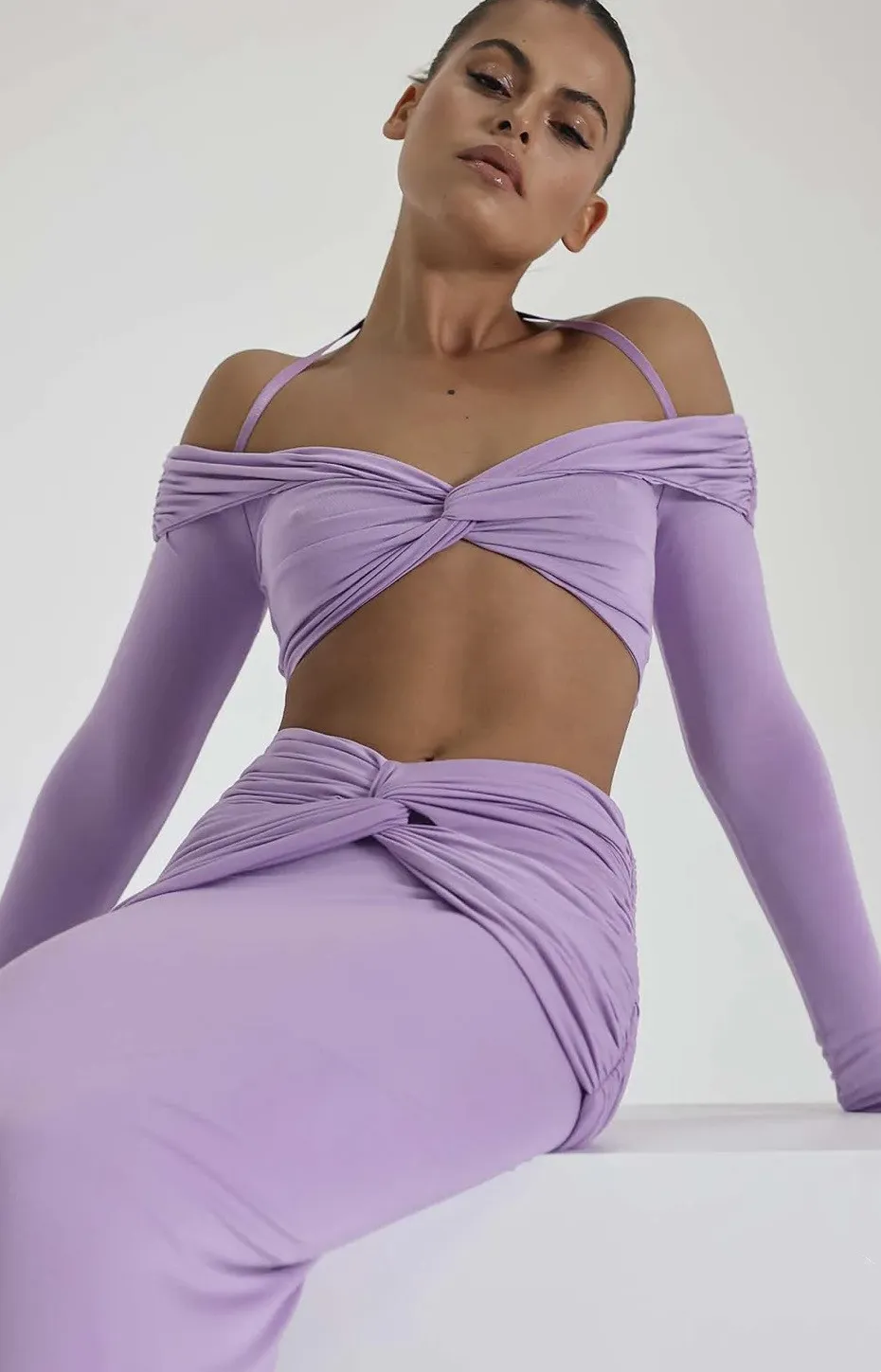 This Fall Women Off Shoulder Halter Neck Long Sleeve Knot Crop Top+ Maxi Dress Two Piece Design Made Of High Quality Polyster And Spandex Material. It Is Stretchy, Durable And Comfortable. It Come With The Top And Skirt Matching Set. Women’s Skirt Suit Sets Is a Great Alternative To One Piece Outfit. It Can Either Be Worn Together Or Individually, So You Can Combine Them Endlessly. Grab Different Two Piece Skirt Set Wholesale On Our Website a Women’s Clothing Store Online At Really Cheap Price And Enjoy The Fast Delivery.