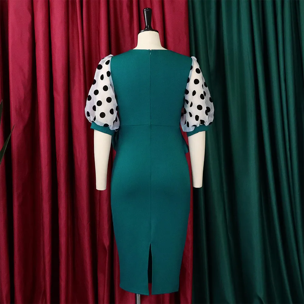 | Product Name | Plus Size Women’S Fashion Dot Mesh Patchwork V Neck Chic Career Bodycon Dress |