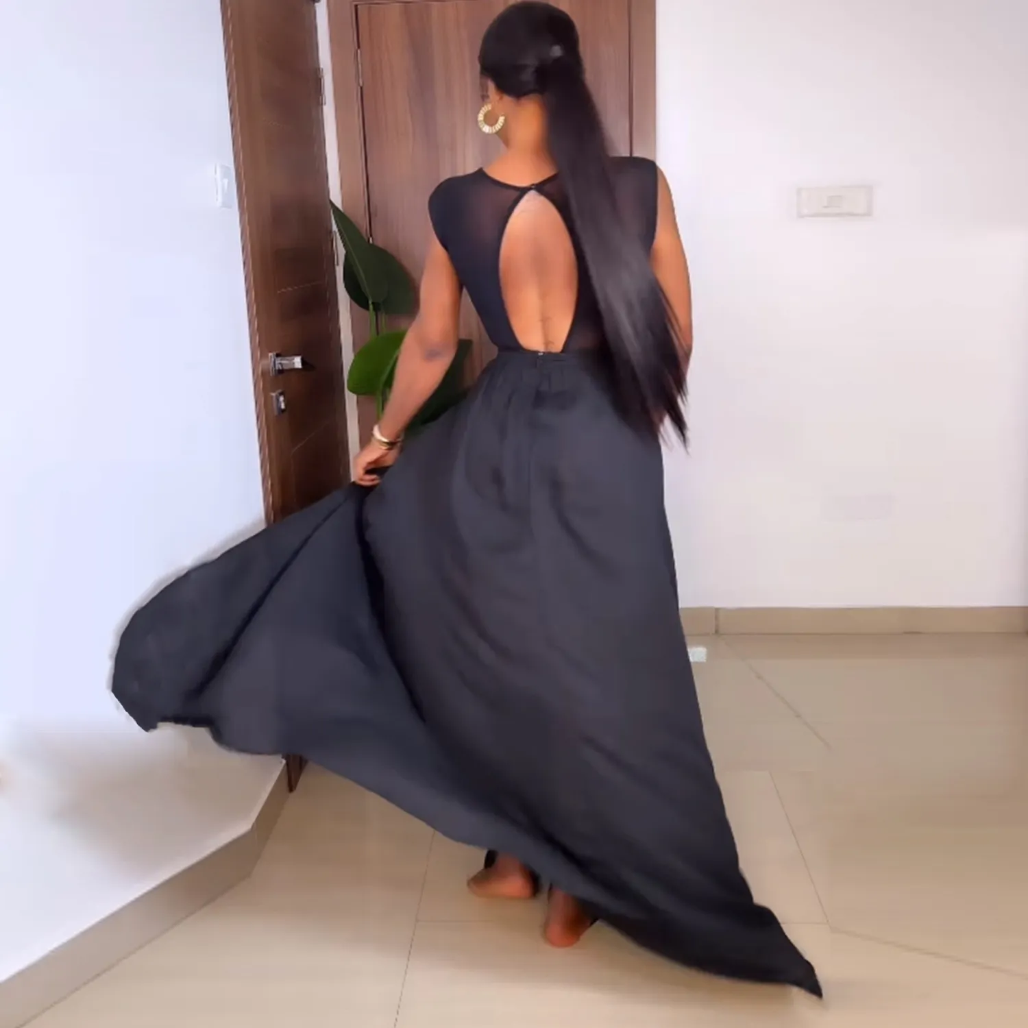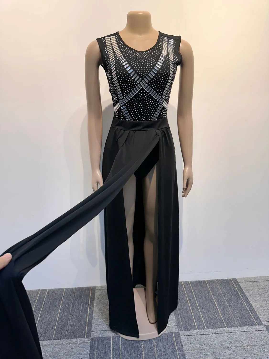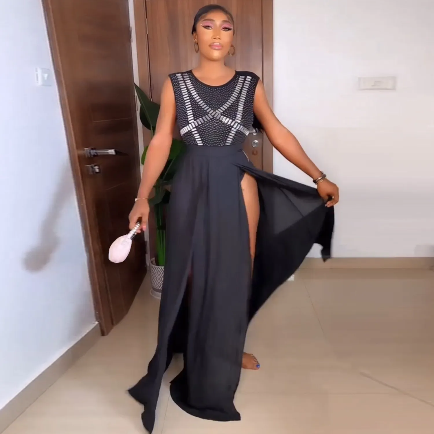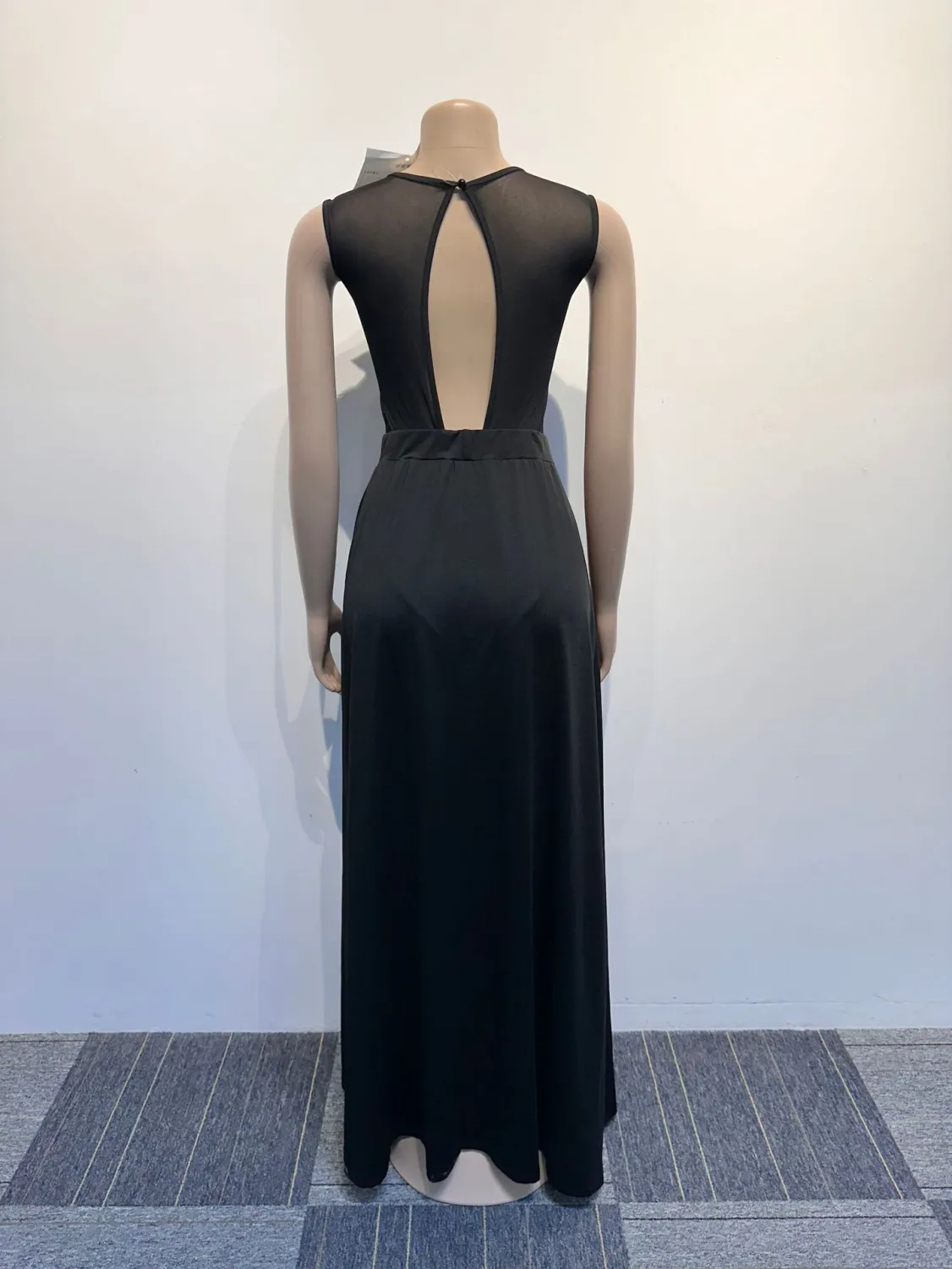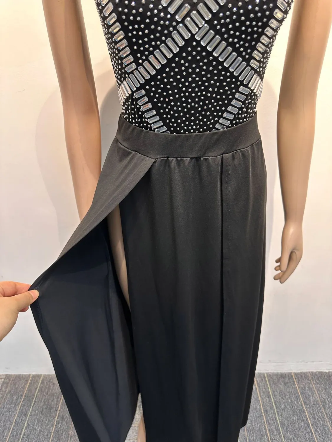 | Product Name | Sexy Beaded See-Through Low Back Mesh Bodysuit Slit Skirt Two-Piece Set |