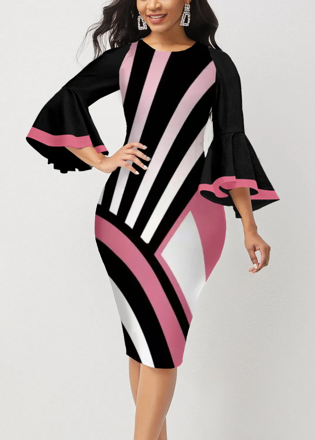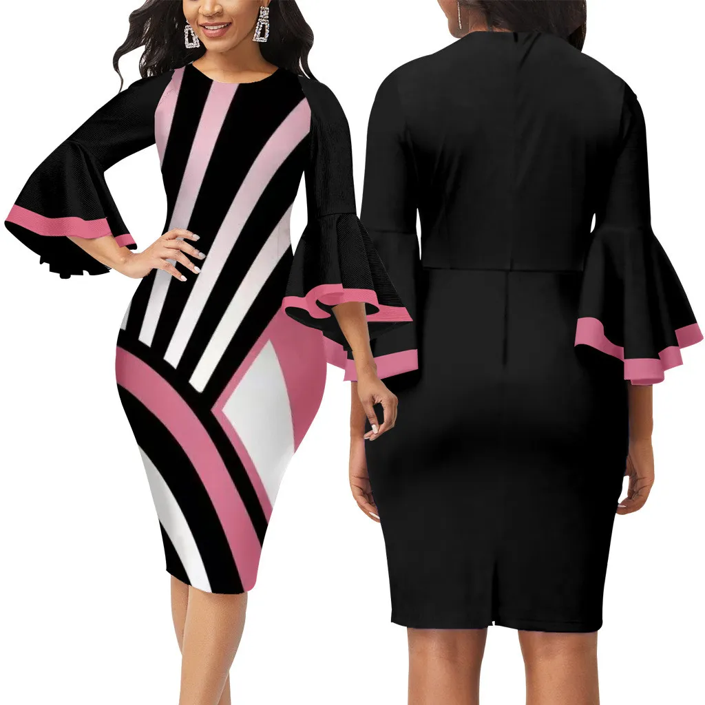 This Sexy Fashion Digital Print Bell Bottom Sleeve Women’s Dress Design Made Of High End Polyster And Spandex Material, It Has Enough Stretch, Wearing Comfortable And Make You Good Emotion All The Day. The Office Wear For Ladies Is a Perfect Look For Attend Meetings, Meet Important Customers, Go To Work Daily. When You Need Wholesale Best Work Dresses, You Can Find On Our Wholesale Women Appreal Online Store Something That You Really Can Not Find From Other Place.