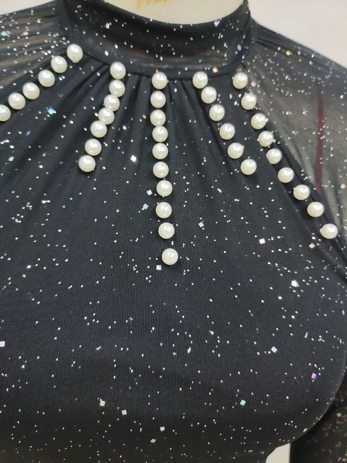 | Product Name | Sexy Fashion Pearl Glitter Tight Fitting Mesh Dress |