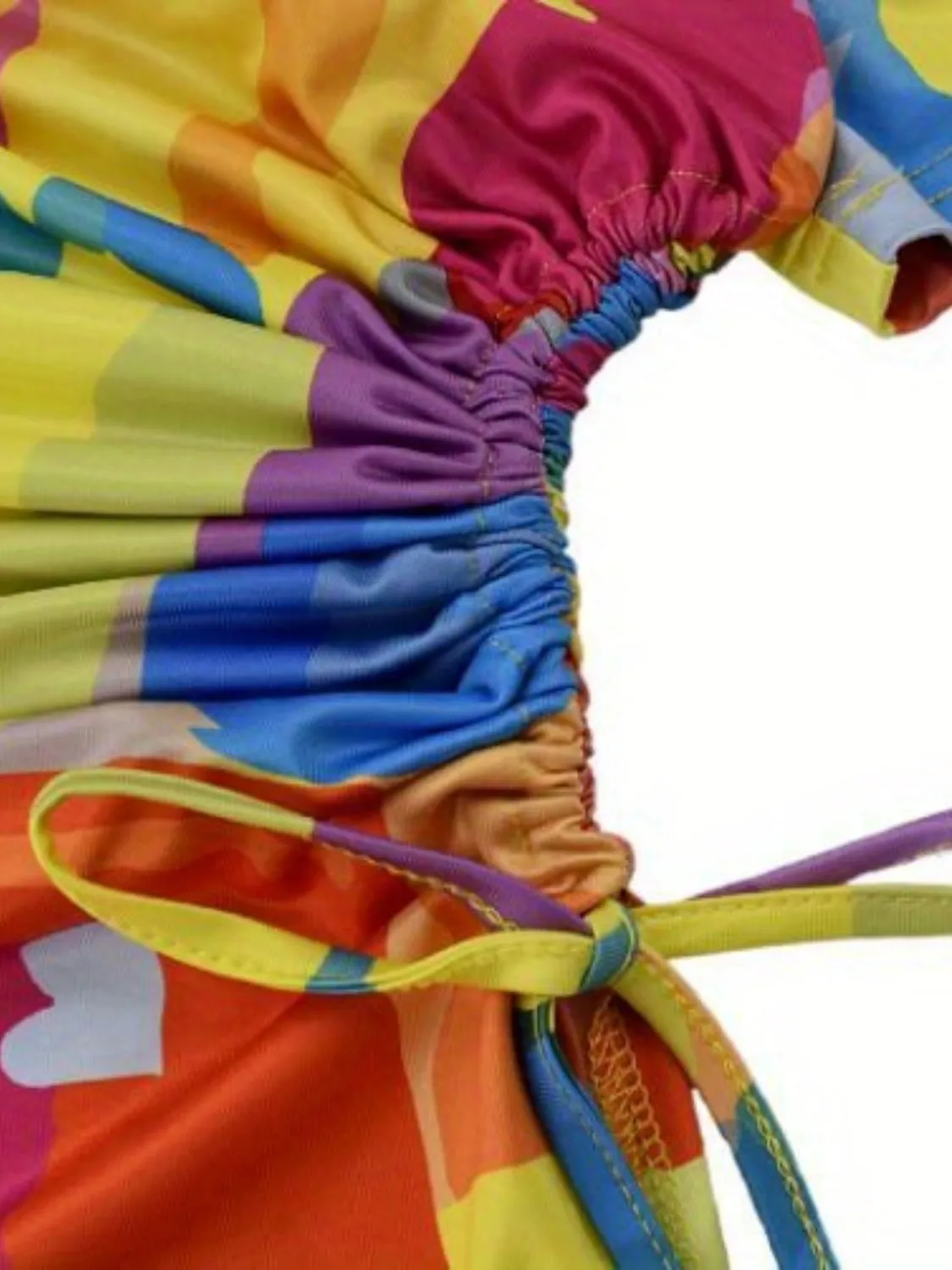 | Product Name | Sexy Multicolor Print Short Sleeve Drawstring Irregular Casual Dress |
