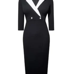 Fashion Women Chic Elegant Suit Skirt Button Patchwork Dress
