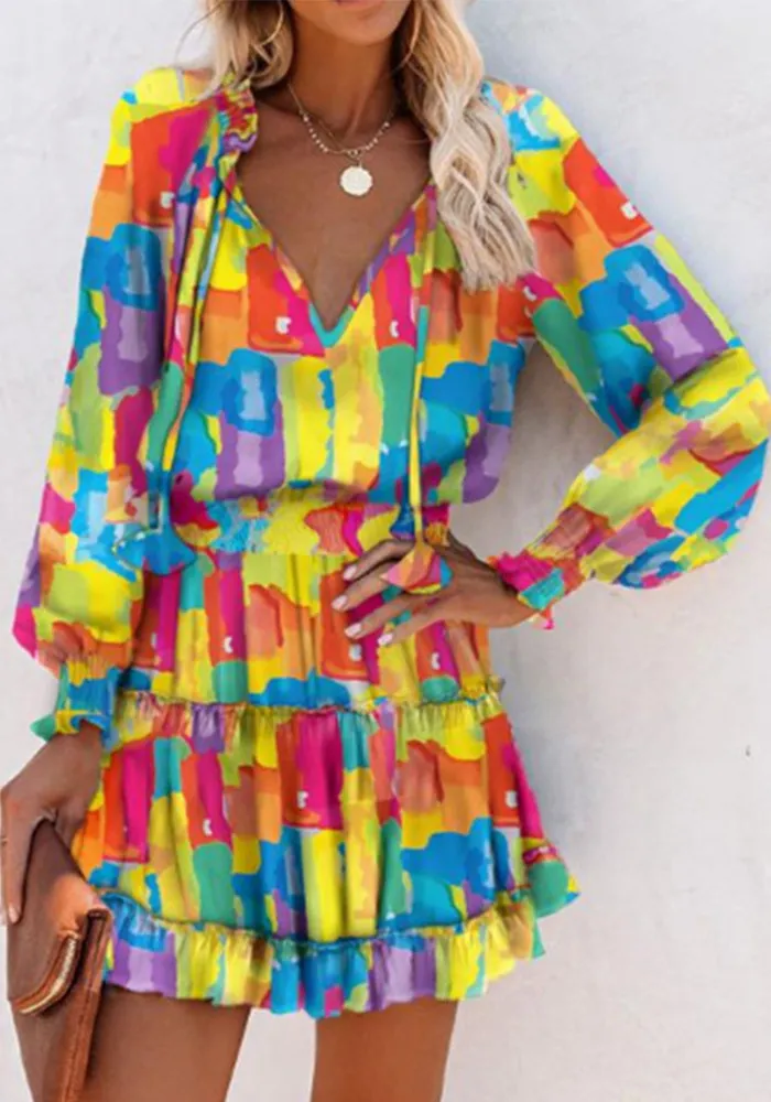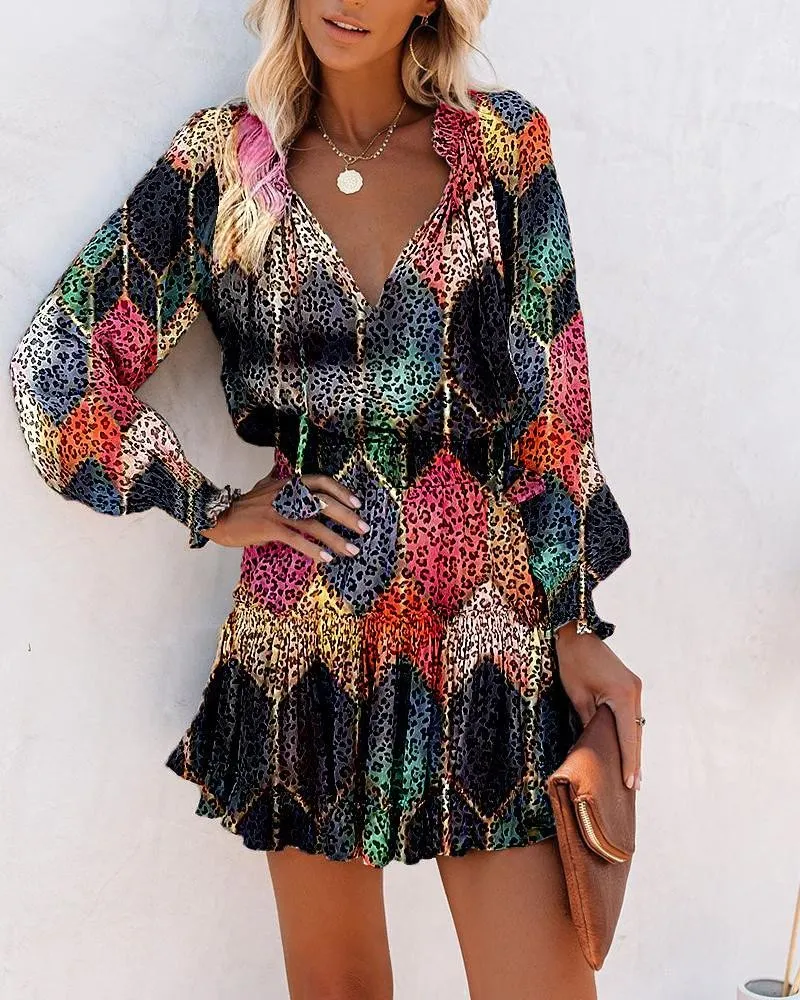 | Product Name | Spring Summer Long Sleeve V Neck Fashion Print Slim Waist Dress For Women |