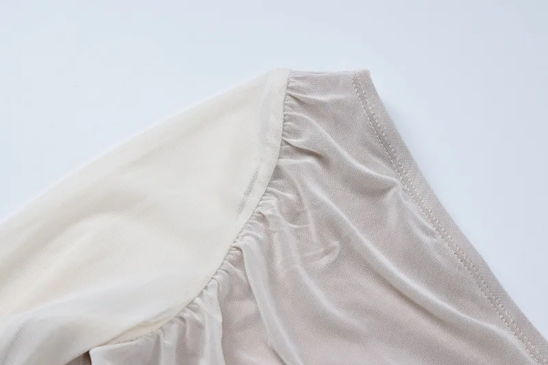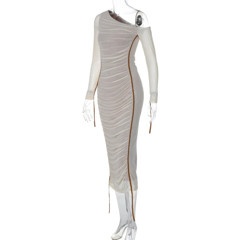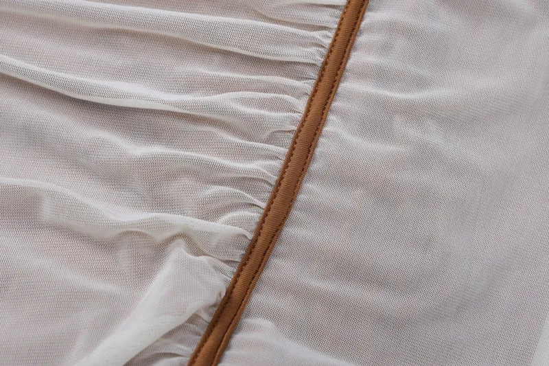 | Product Name | Spring Women Long Sleeve Mesh Patchwork Slash Shoulder Pleated Dress |