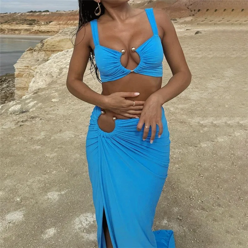 | Product Name | Spring Women’s Sexy Crop Tank Top High Waist Slit Long Skirt Two Piece Set |