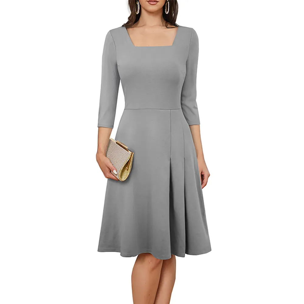 | Product Name | Summer Chic Pleated Solid Mid Waist Square Neck Zip Cozy A-Line Dress |