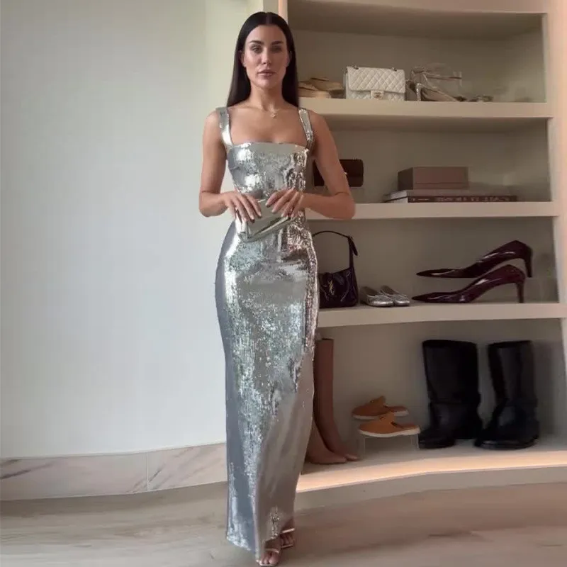 | Product Name | Summer Fashion Metallic Luxury Sexy Backless Slim Women Evening Dress |