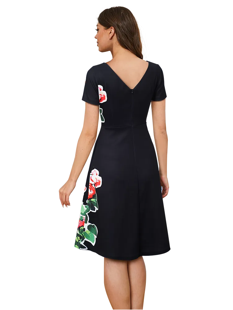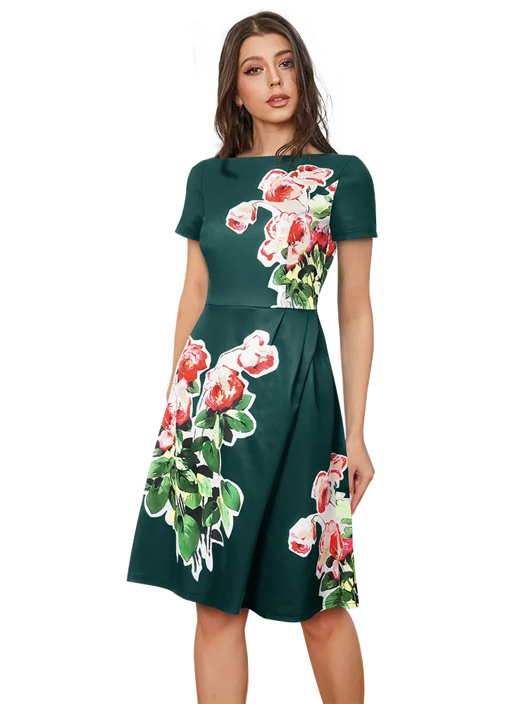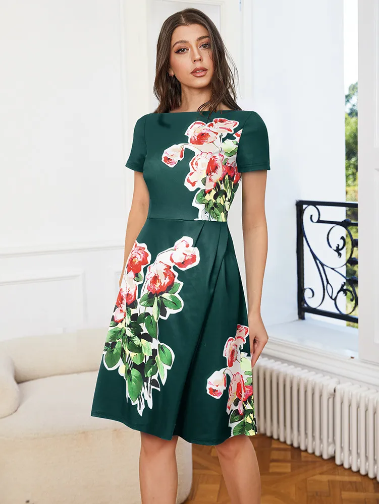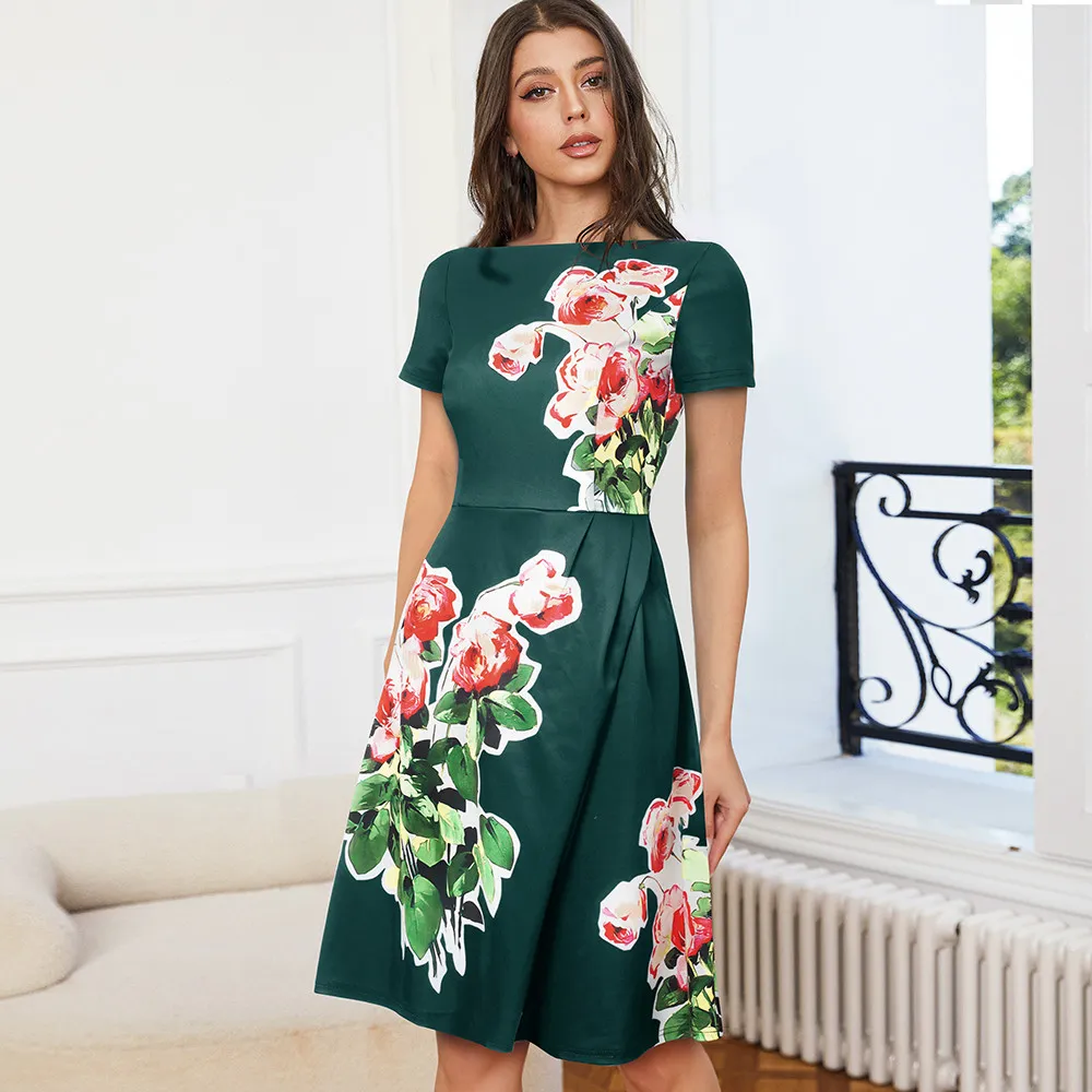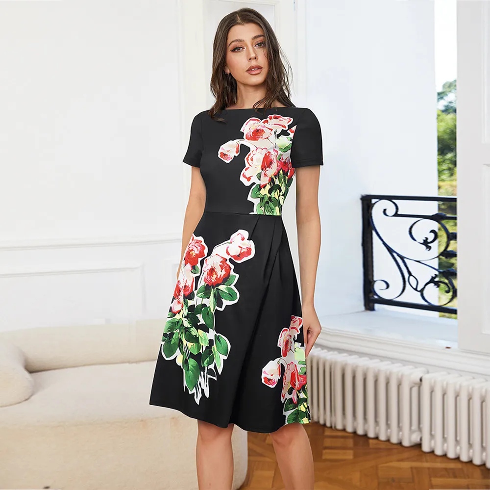 | Product Name | Summer Vintage Print Elegant Round Neck Irregular Dress for Women |