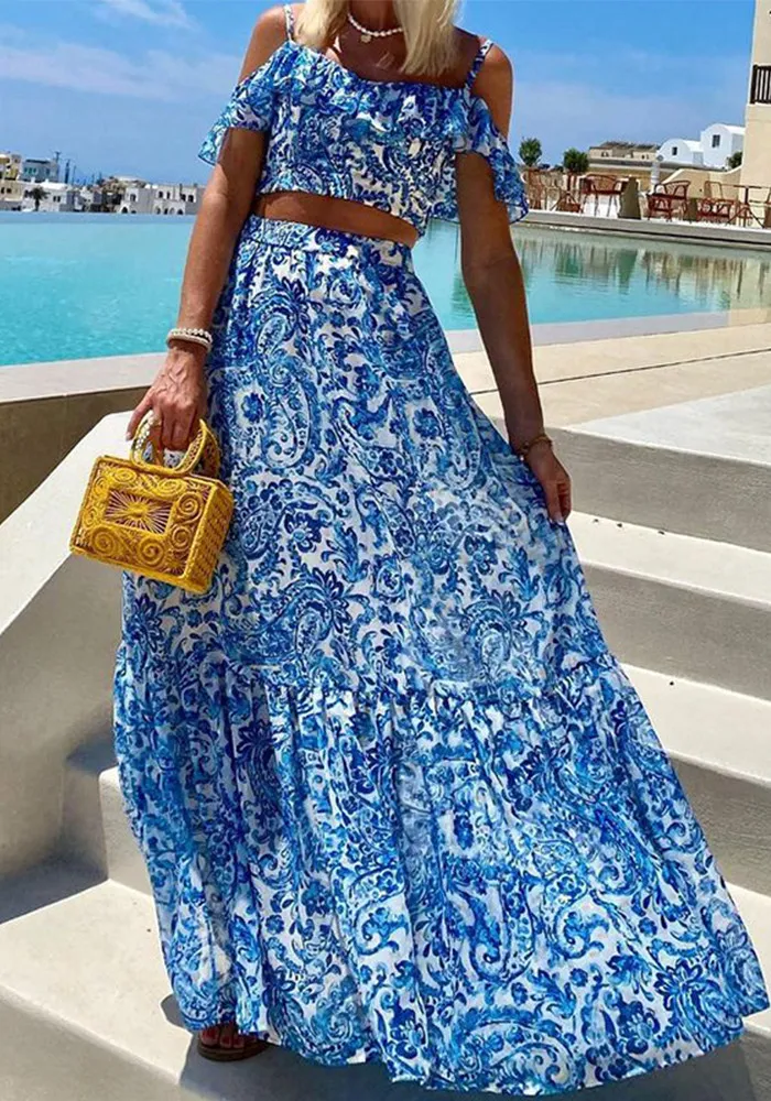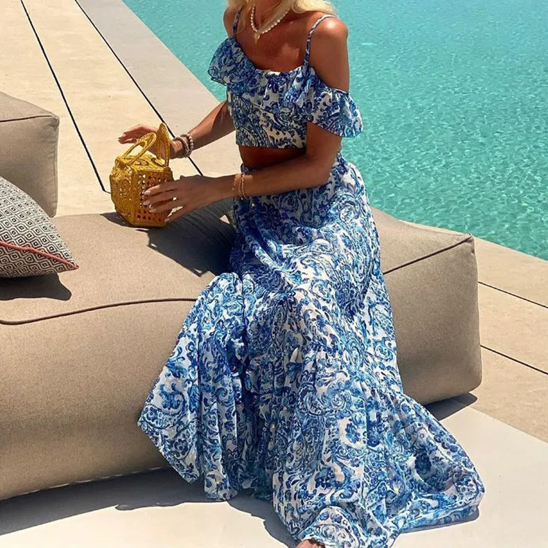 | Product Name | Summer Women’s Fashion Chic Printed Skirt Camisole Top Two-Piece Set |