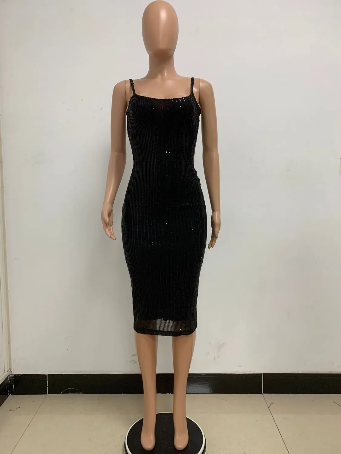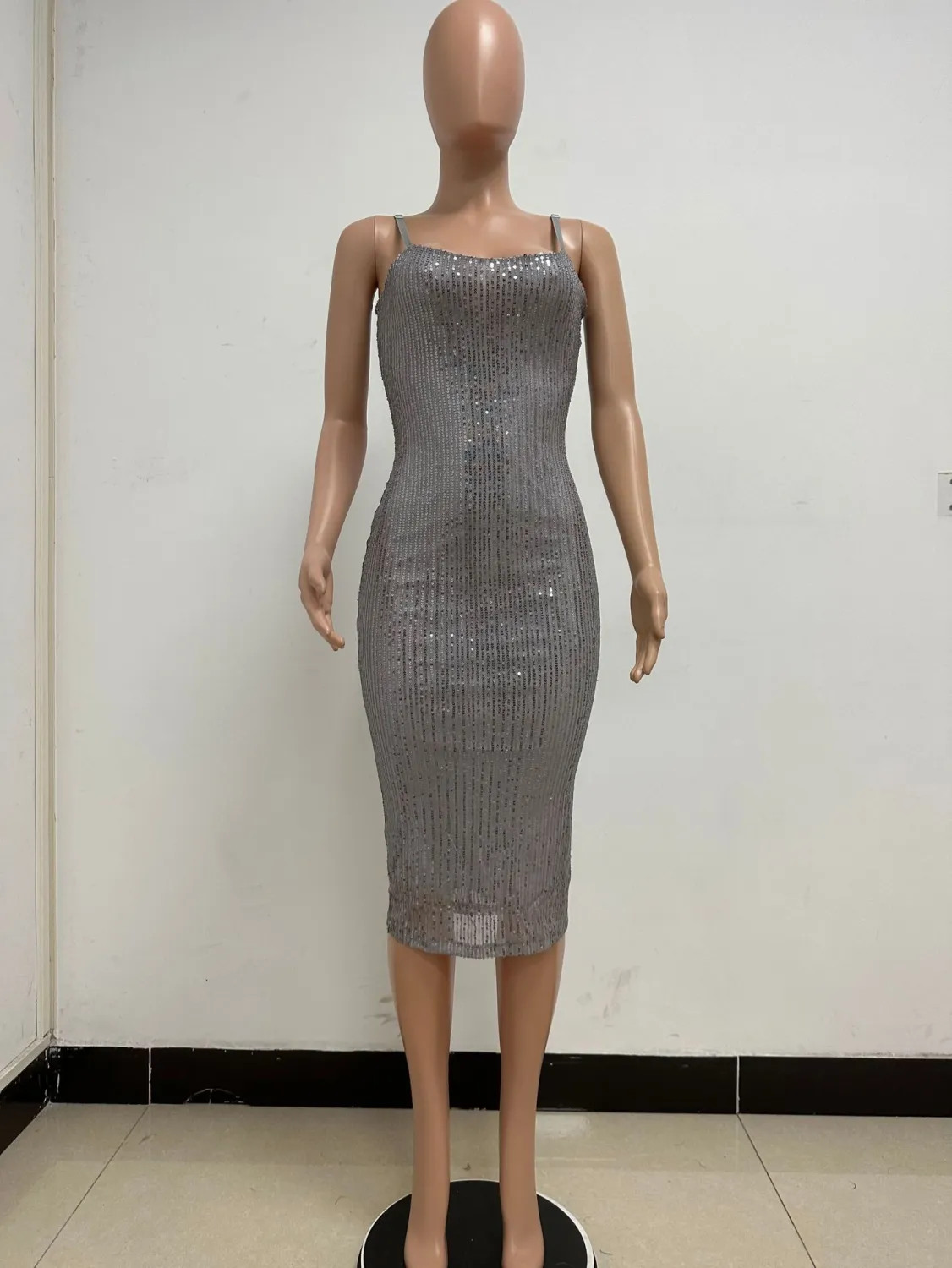 | Product Name | Summer Women’s Sleeveless Low Back Straps Sequin Party Dress |