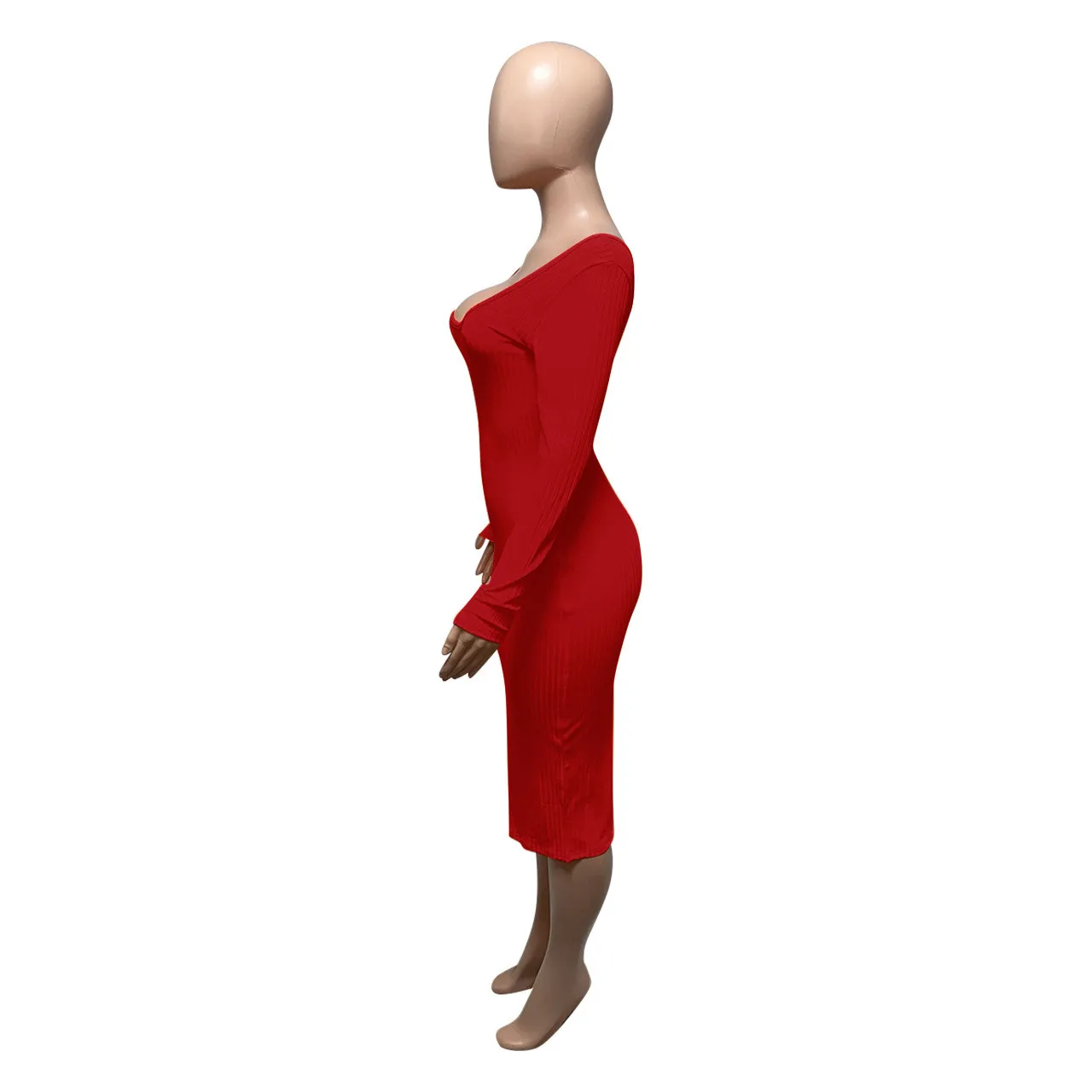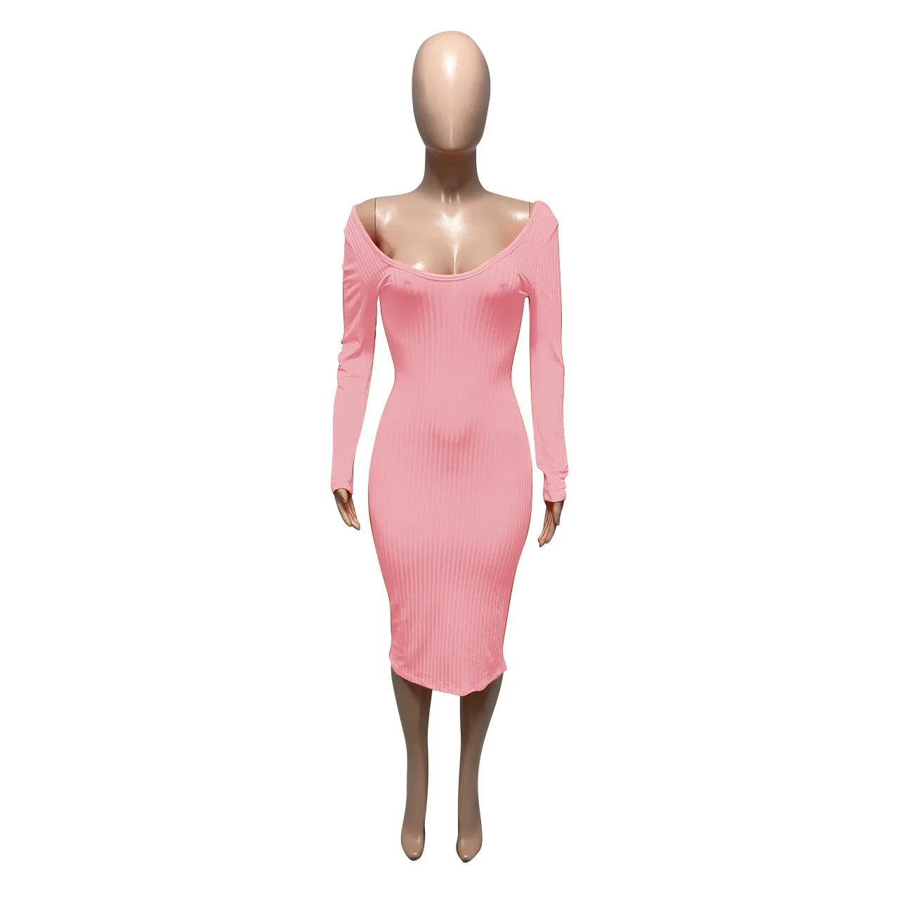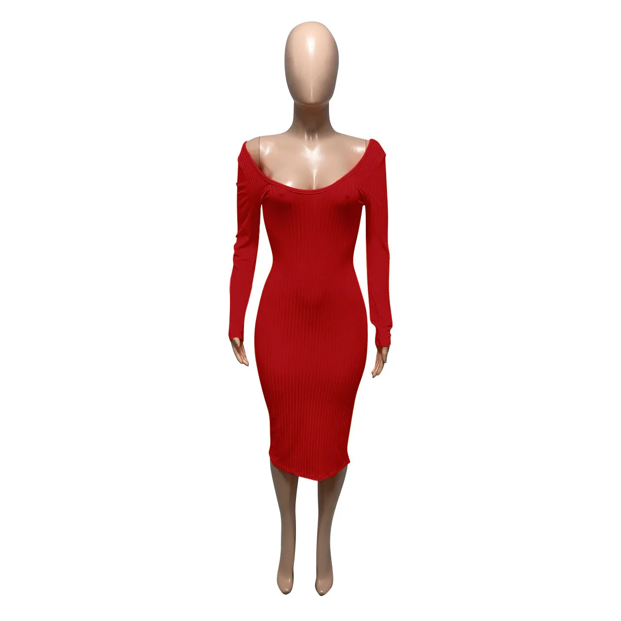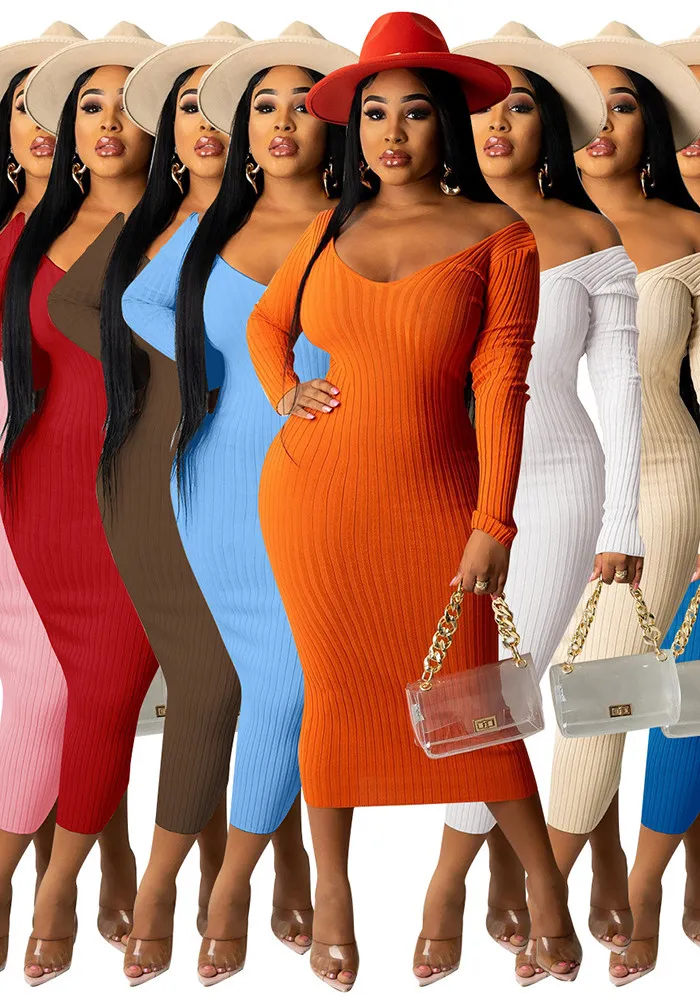 | Product Name | V-Neck Off-Shoulder Ribbed Slim Sexy Dress |