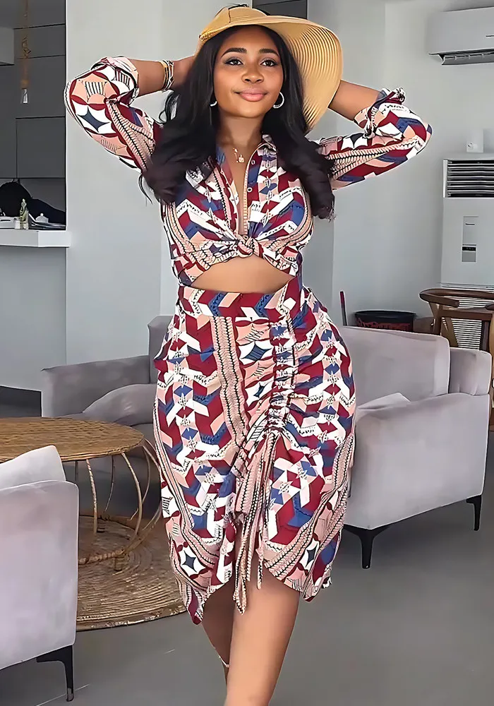 This Women Casual Printed Shirt And Skirt Two-Piece Set Design Made Of High Quality Polyster And Spandex Material. It Is Stretchy, Durable And Comfortable. It Come With The Top And Skirt Matching Set. Women’s Skirt Suit Sets Is a Great Alternative To One Piece Outfit. It Can Either Be Worn Together Or Individually, So You Can Combine Them Endlessly. Grab Different Two Piece Skirt Set Wholesale On Our Website a Women’s Clothing Store Online At Really Cheap Price And Enjoy The Fast Delivery.