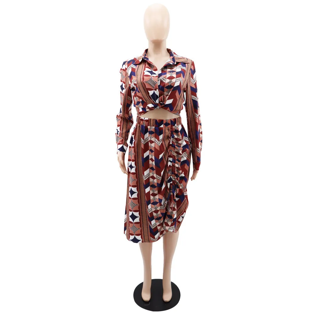 | Product Name | Women Casual printed shirt and skirt two-piece set |