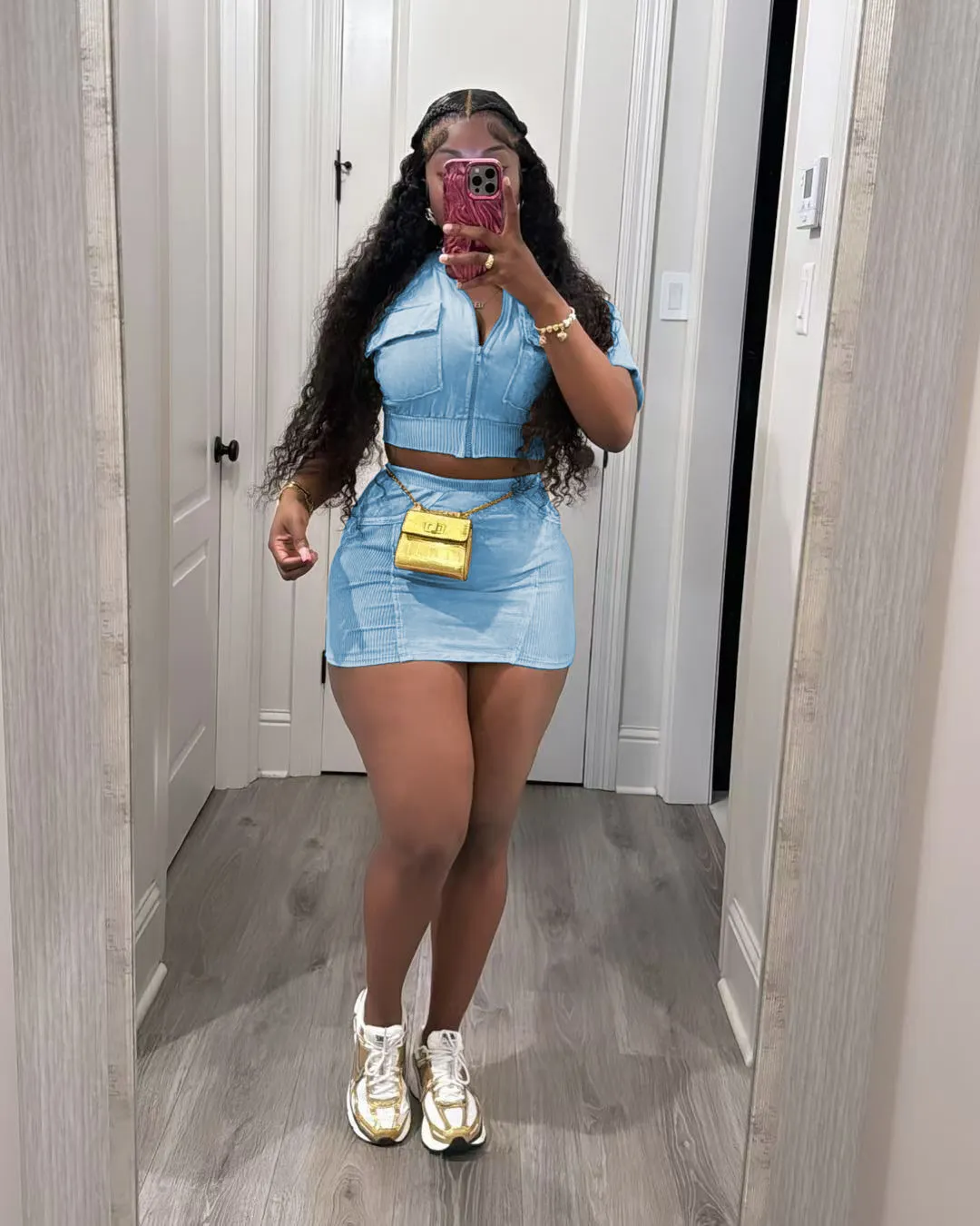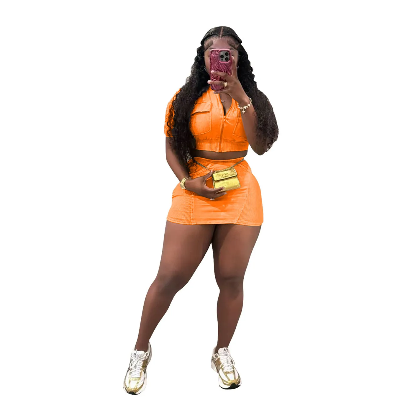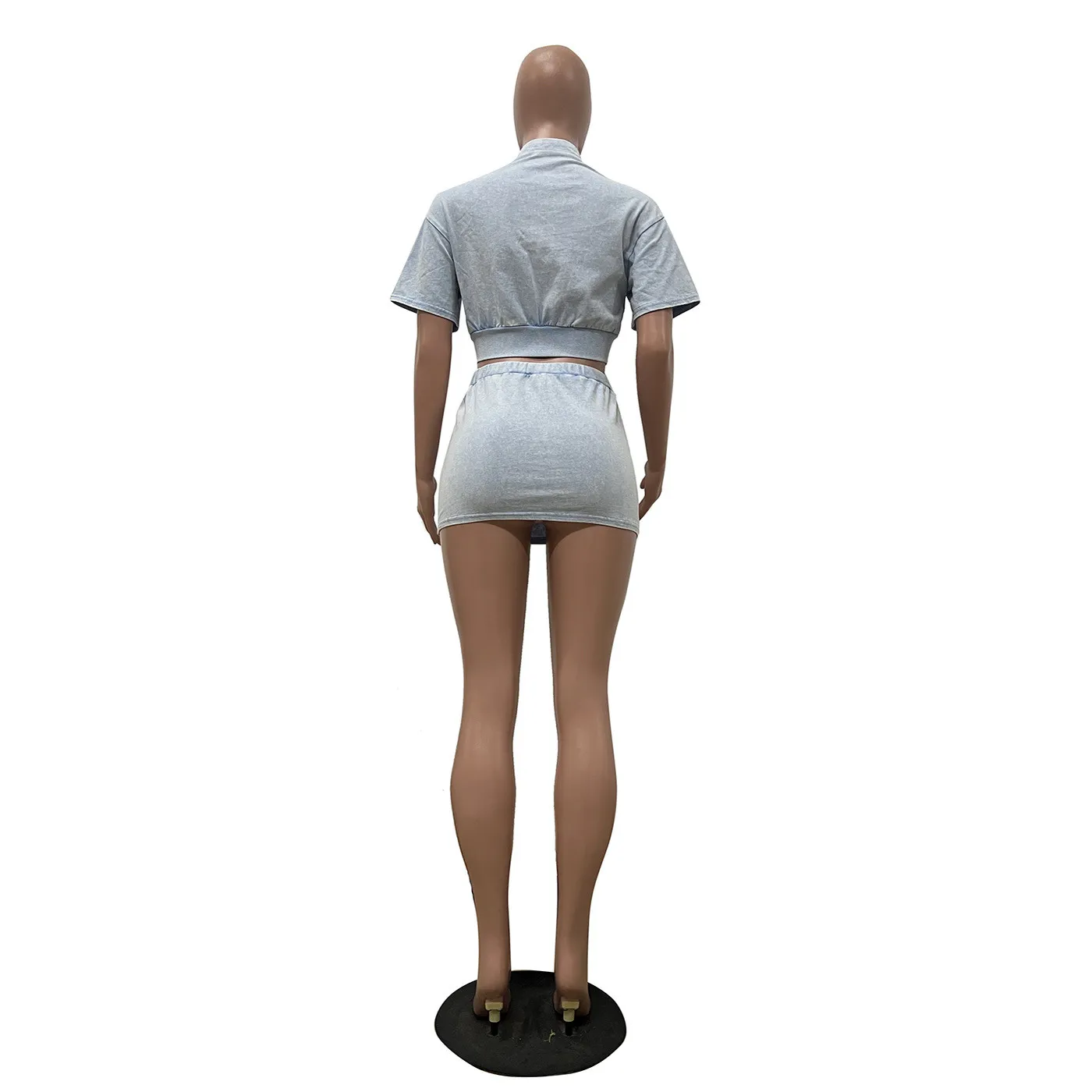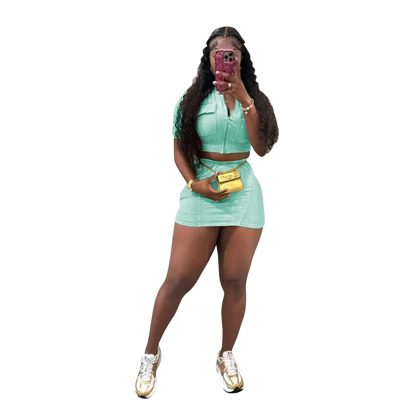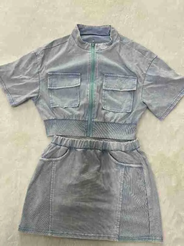 | Product Name | Women casual washed patchwork pocket top and skirt two-piece set |
