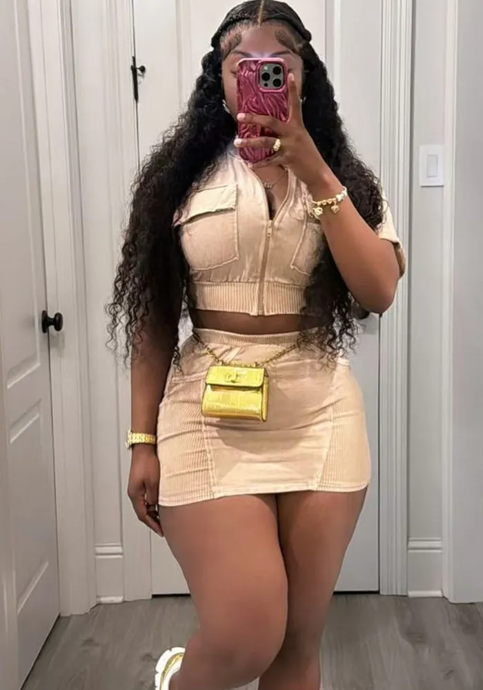 This Women Casual Washed Patchwork Pocket Top And Skirt Two-Piece Set Design Made Of High Quality Polyster And Spandex Material. It Is Stretchy, Durable And Comfortable. It Come With The Top And Skirt Matching Set. Women’s Skirt Suit Sets Is a Great Alternative To One Piece Outfit. It Can Either Be Worn Together Or Individually, So You Can Combine Them Endlessly. Grab Different Two Piece Skirt Set Wholesale On Our Website a Women’s Clothing Store Online At Really Cheap Price And Enjoy The Fast Delivery.