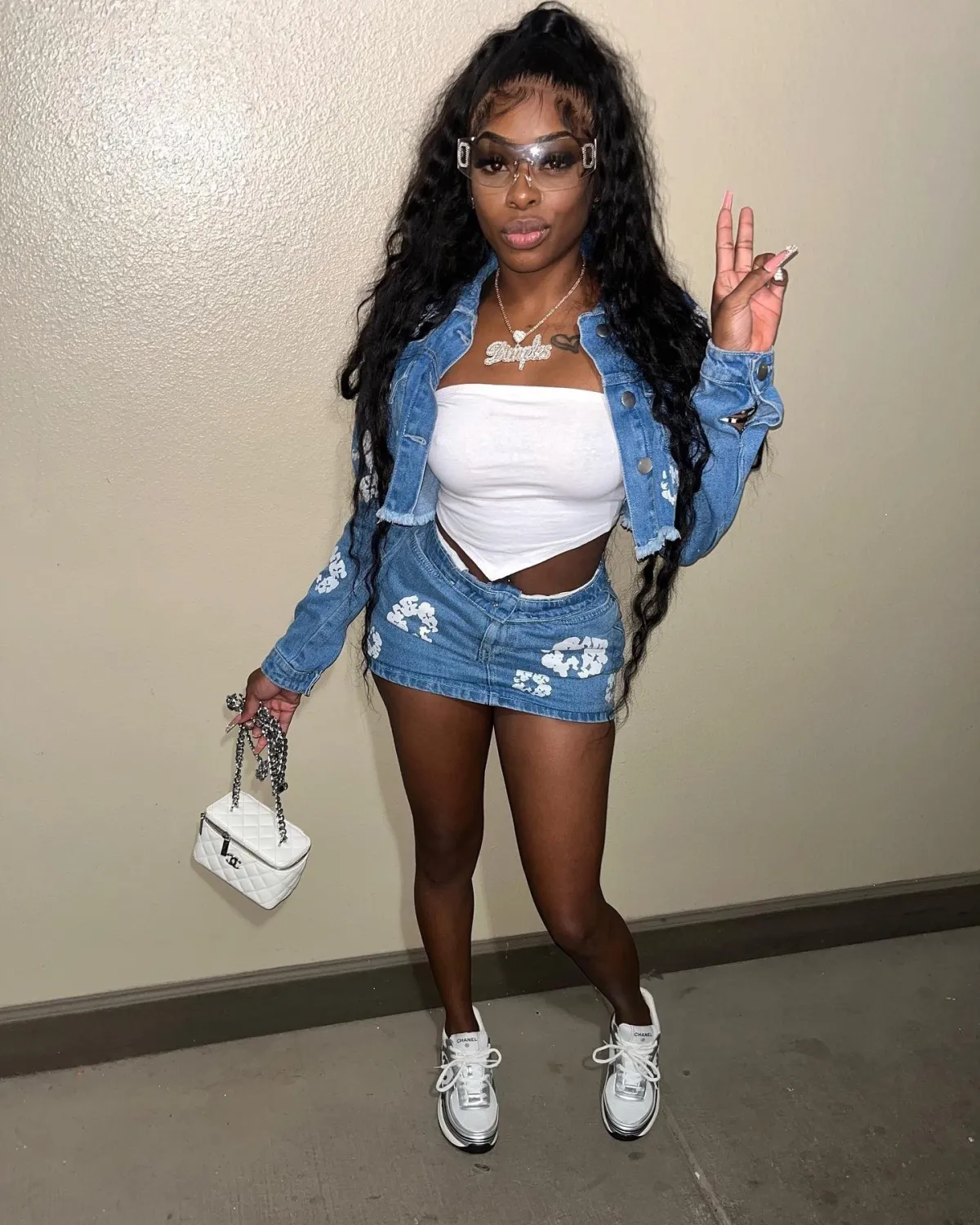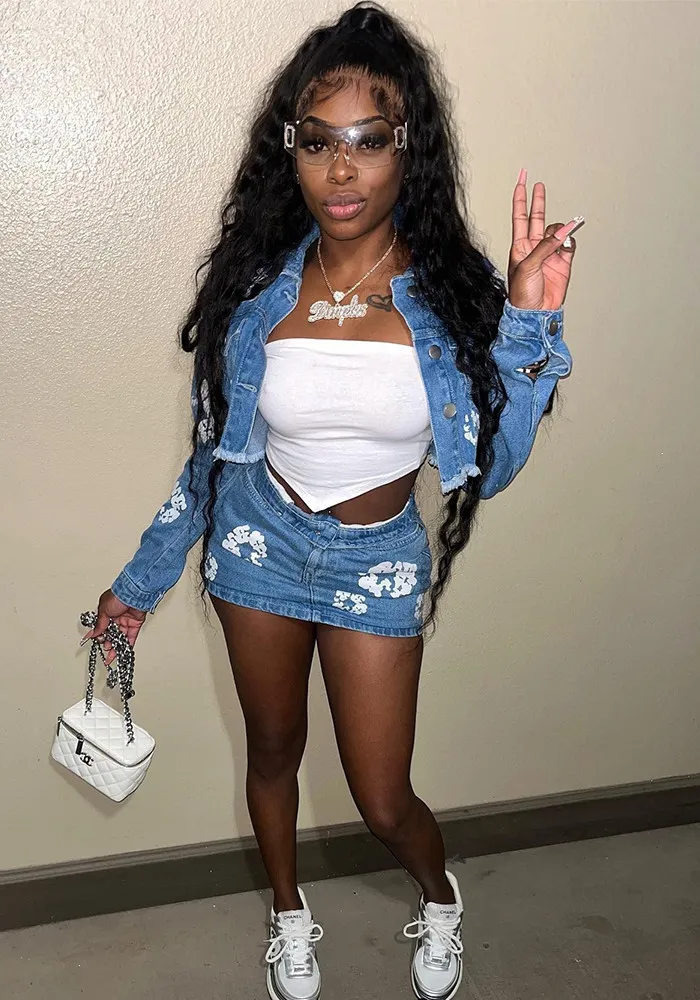 This Women Denim Stretch Printed Top And Skirt Two-Piece Set Design Made Of High Quality Polyster And Spandex Material. It Is Stretchy, Durable And Comfortable. It Come With The Top And Skirt Matching Set. Women’s Skirt Suit Sets Is a Great Alternative To One Piece Outfit. It Can Either Be Worn Together Or Individually, So You Can Combine Them Endlessly. Grab Different Two Piece Skirt Set Wholesale On Our Website a Women’s Clothing Store Online At Really Cheap Price And Enjoy The Fast Delivery.