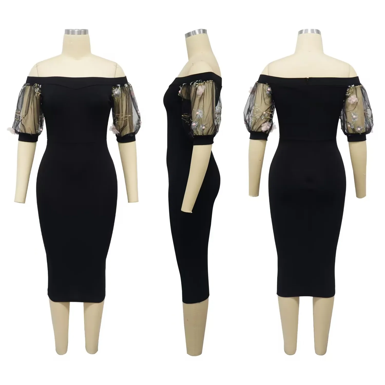 | Product Name | Women Embroidered Puff Sleeve Off Shoulder Dress |
