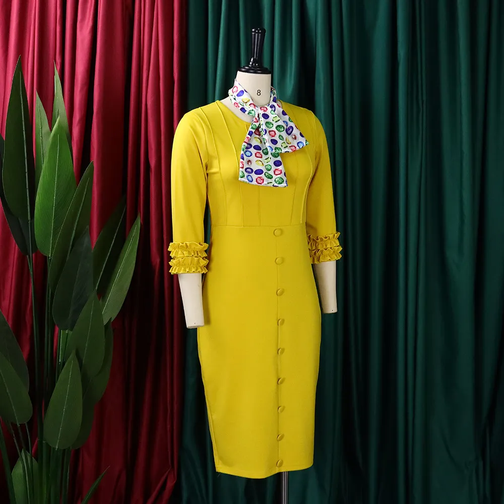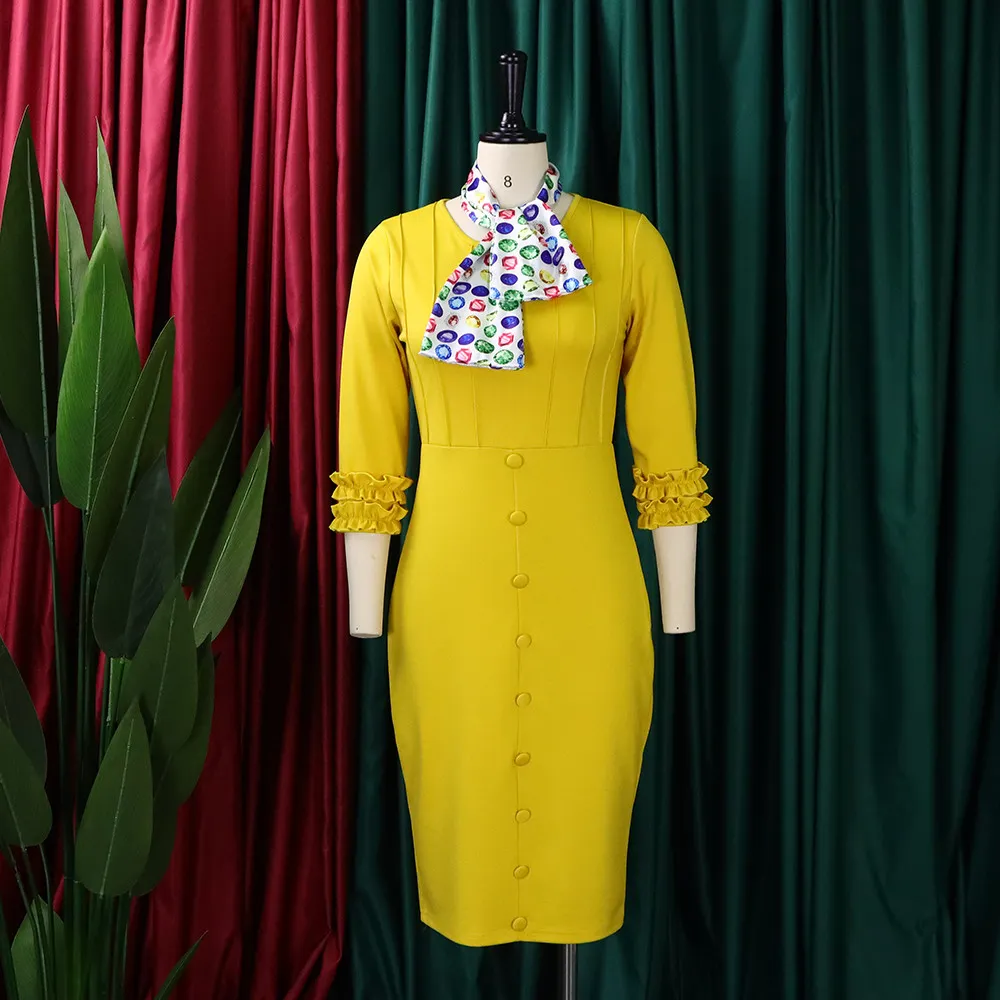 This Women Fall Long Sleeve Solid Color Slit Scarf Bodycon Dress Design Made Of High End Polyster And Spandex Material, It Has Enough Stretch, Wearing Comfortable And Make You Good Emotion All The Day. The Office Wear For Ladies Is a Perfect Look For Attend Meetings, Meet Important Customers, Go To Work Daily. When You Need Wholesale Best Work Dresses, You Can Find On Our Wholesale Women Appreal Online Store Something That You Really Can Not Find From Other Place.