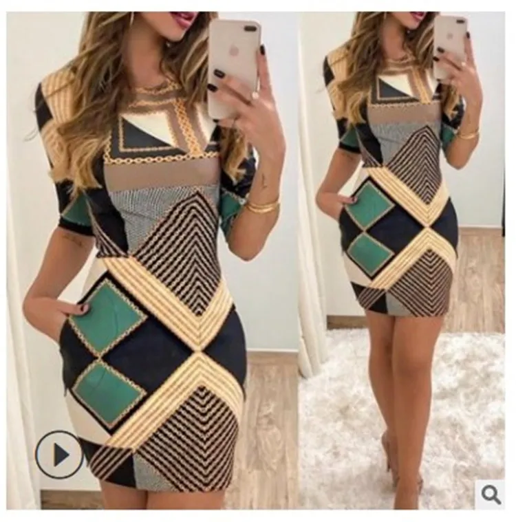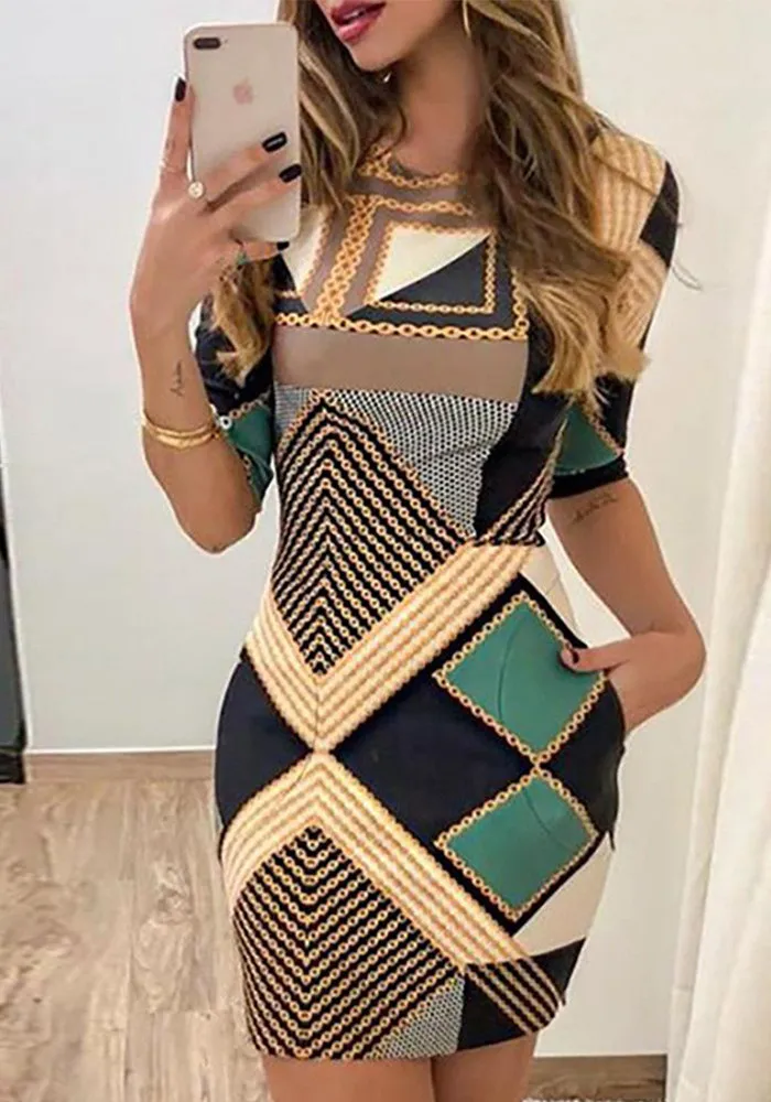 | Product Name | Women Pocket Print Short Sleeve Dress |