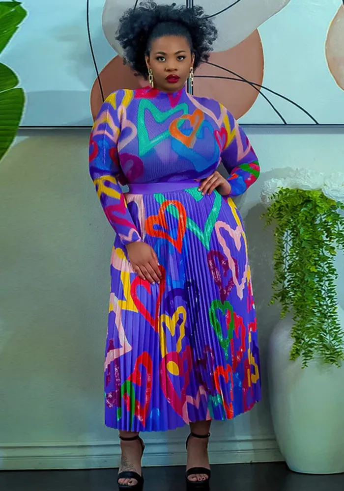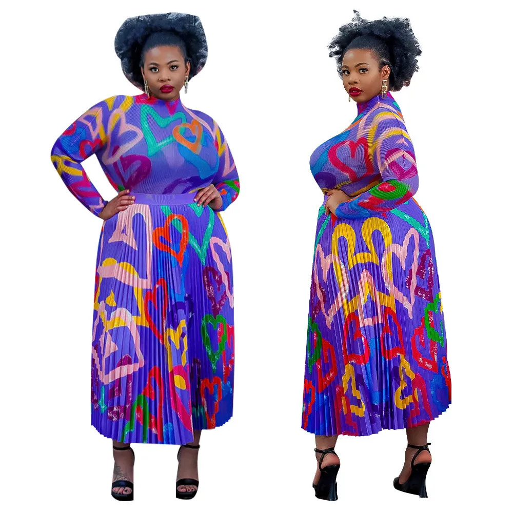 | Product Name | Women Printed Pleated Top and Dress Two-Piece Set |