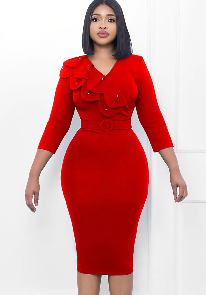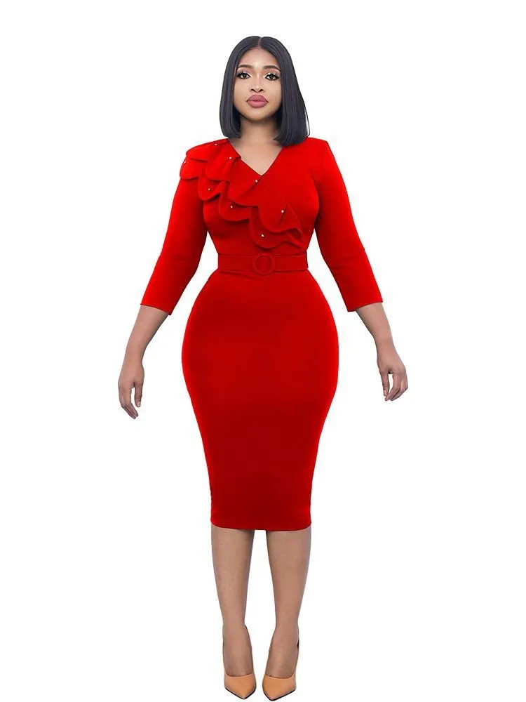 This Women’s Dress African Chic Elegant Beaded Ruffle v Neck Bodycon Dress Design Made Of High End Polyster And Spandex Material, It Has Enough Stretch, Wearing Comfortable And Make You Good Emotion All The Day. The Office Wear For Ladies Is a Perfect Look For Attend Meetings, Meet Important Customers, Go To Work Daily. When You Need Wholesale Best Work Dresses, You Can Find On Our Wholesale Women Appreal Online Store Something That You Really Can Not Find From Other Place.