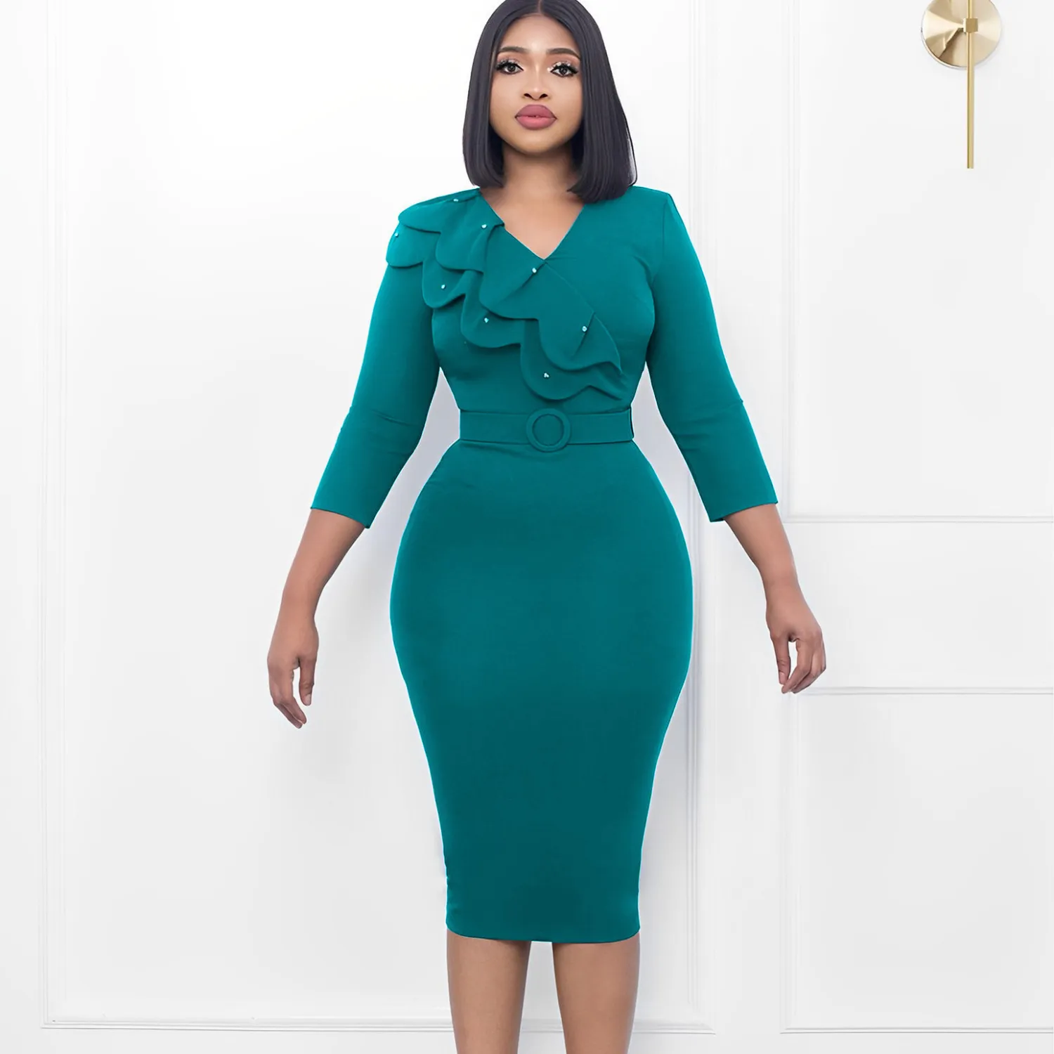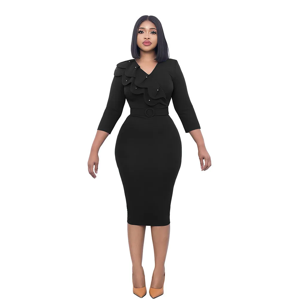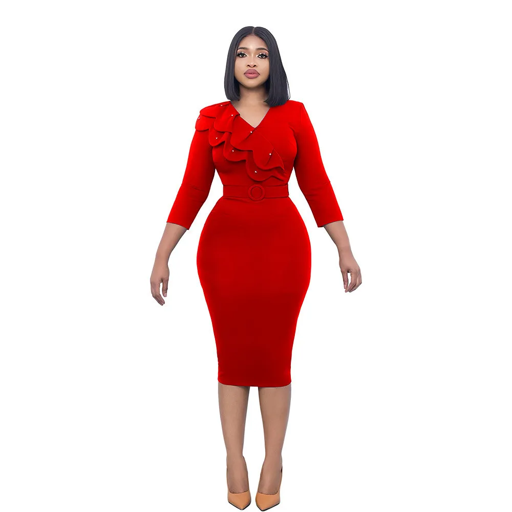 | Product Name | Women’s Dress African Chic Elegant Beaded Ruffle V Neck Bodycon Dress |