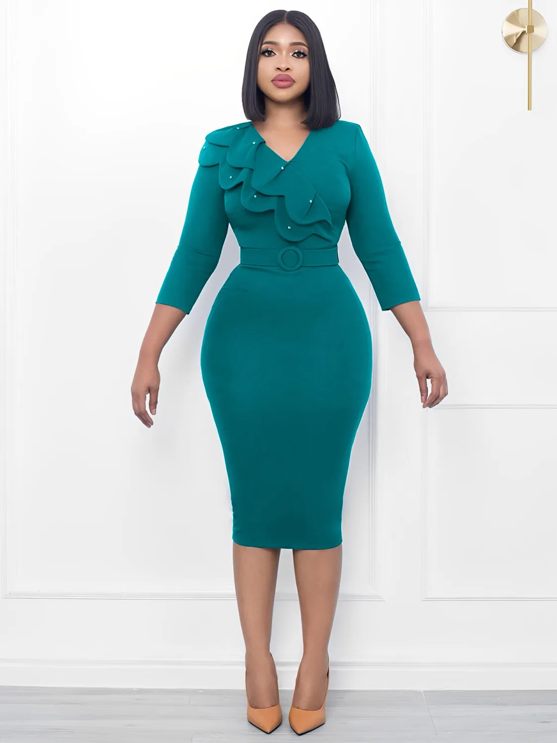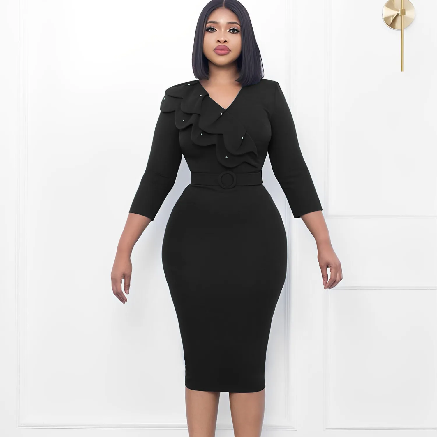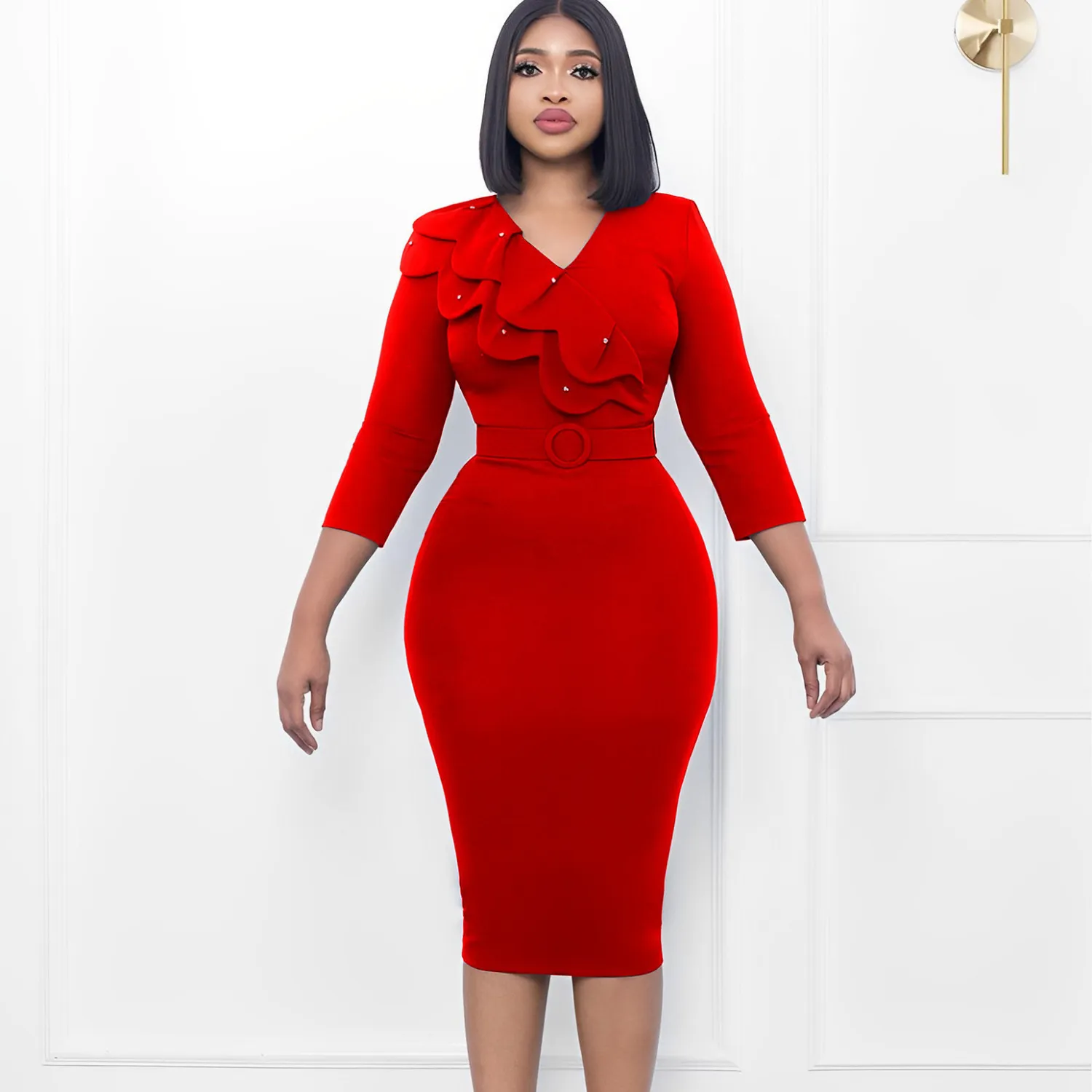 | Product Name | Women’s Dress African Chic Elegant Beaded Ruffle V Neck Bodycon Dress |