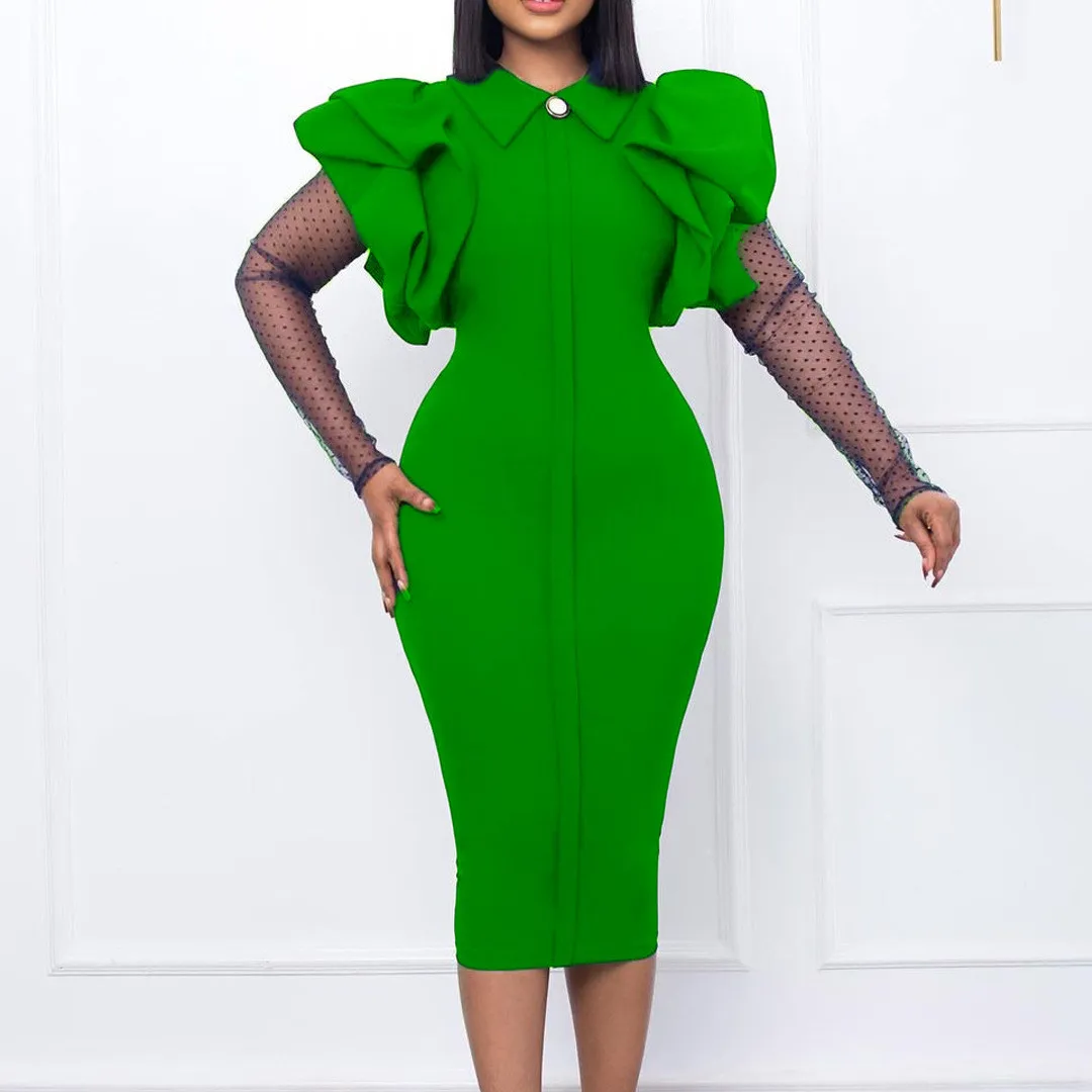 | Product Name | Women’S Fall/Winter Mesh And Pleated Plus Size Ol Chic Career Dress |