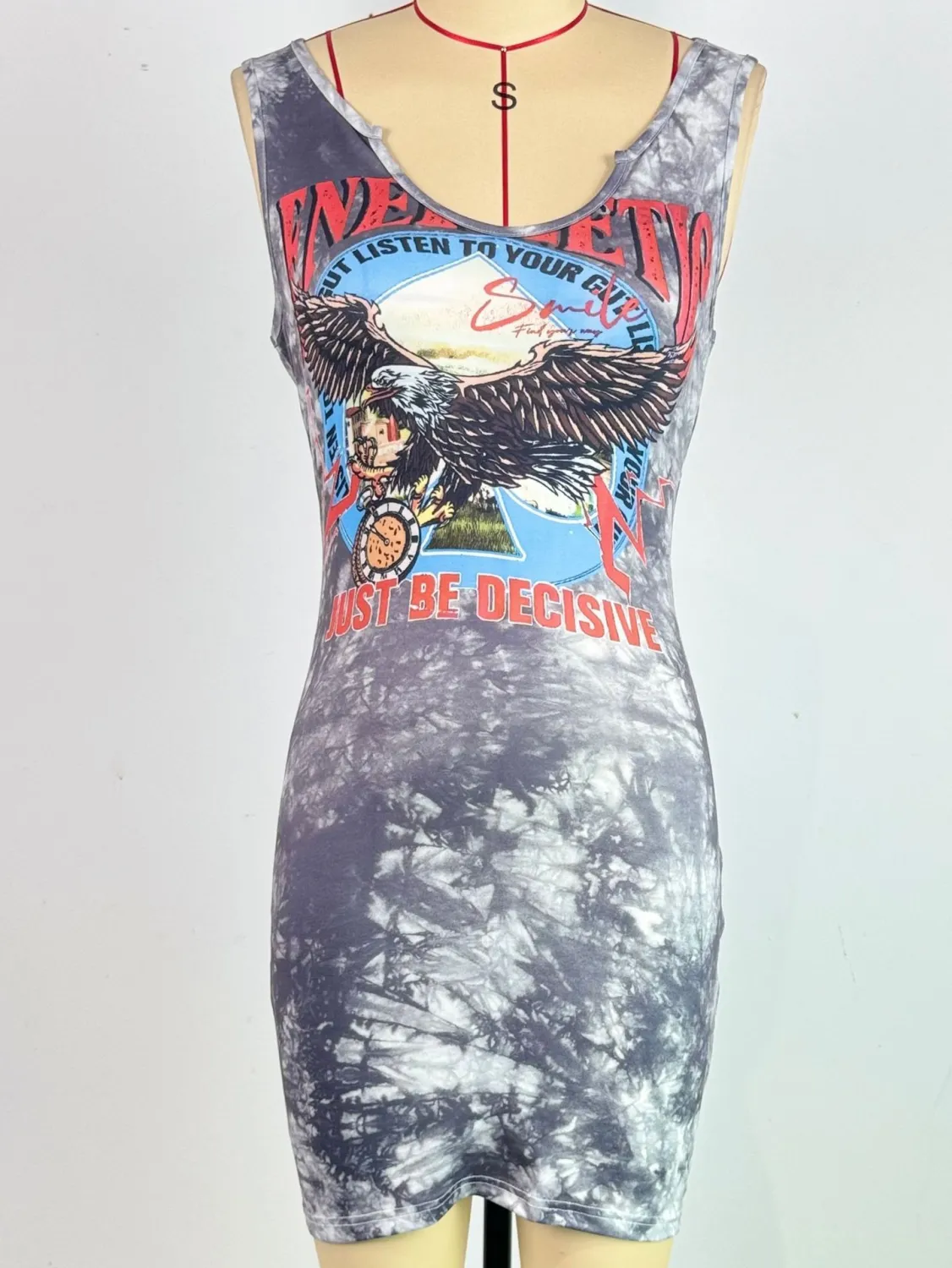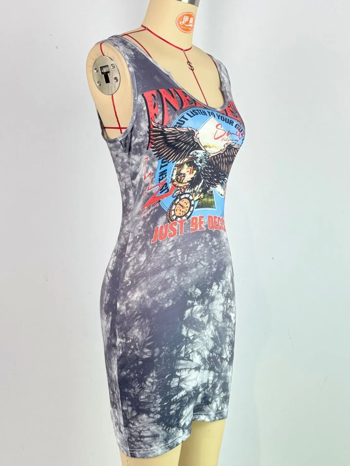 | Product Name | Women’s Fashionable Sexy Slim Tank Dress Tie Dye Eagle Print Sleeveless Tight Fitting Dress |