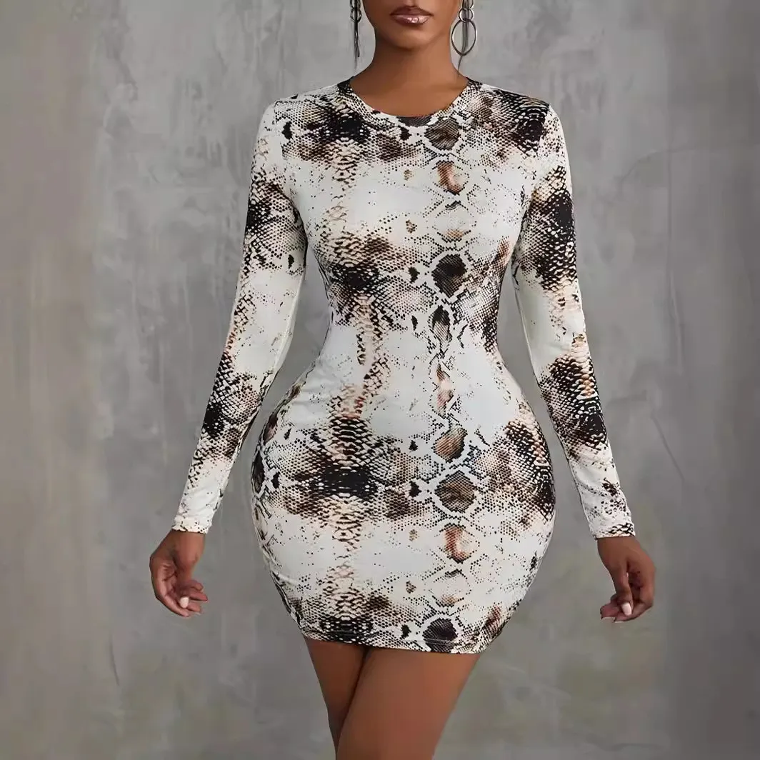 | Product Name | Women’s Round Neck Snake Print Long Sleeve Bodycon Dress |