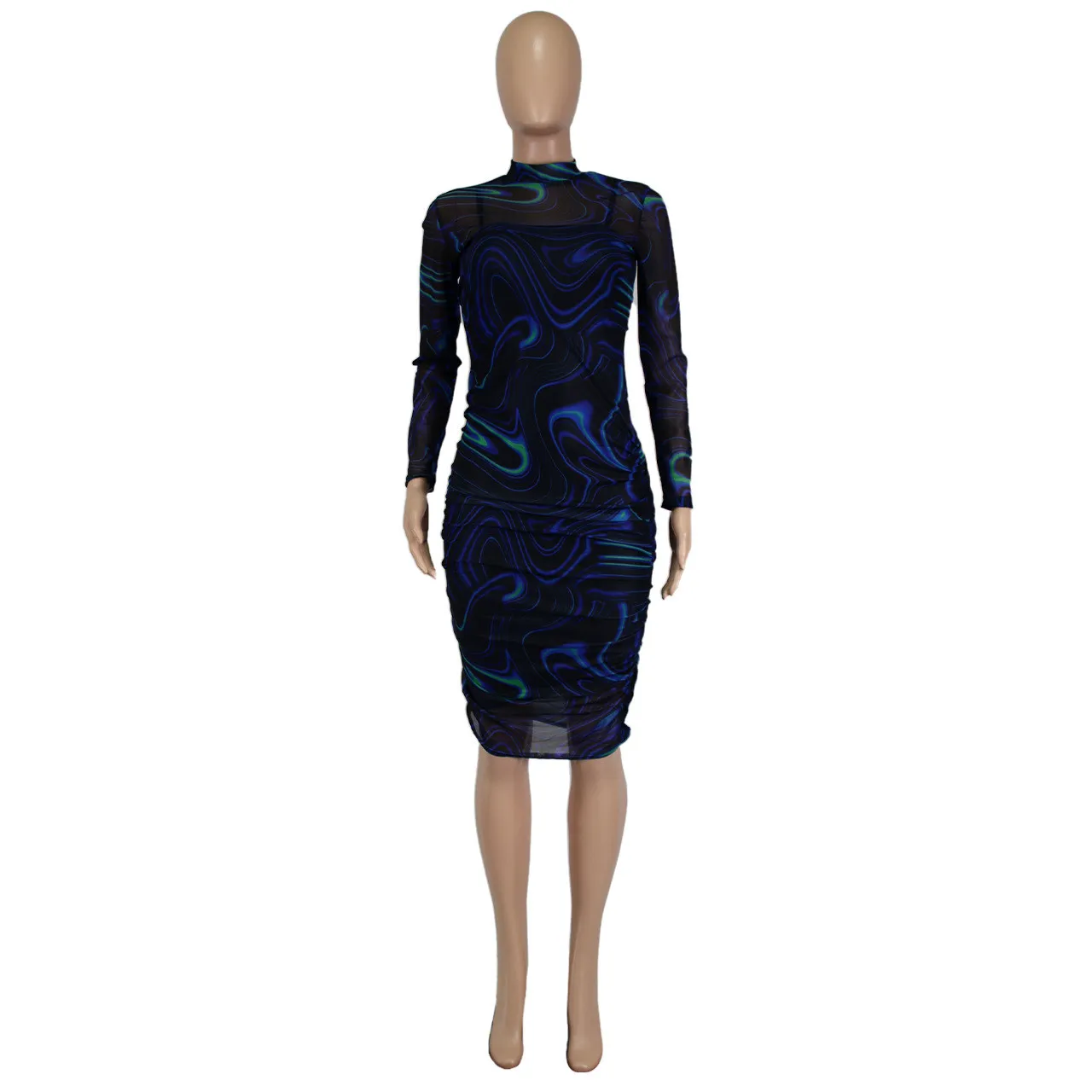 | Product Name | Women’s See-Through Mesh Sling Print Sexy Two Piece Dress |