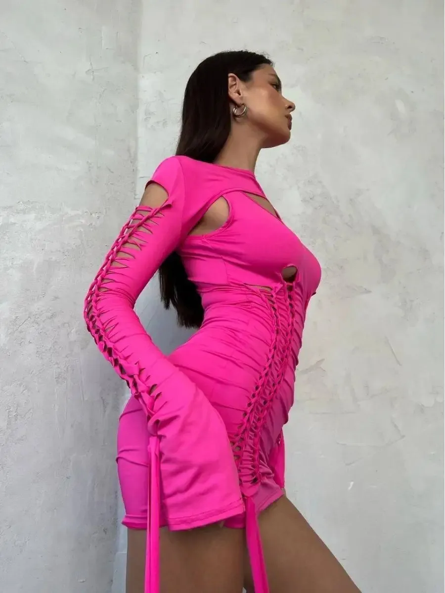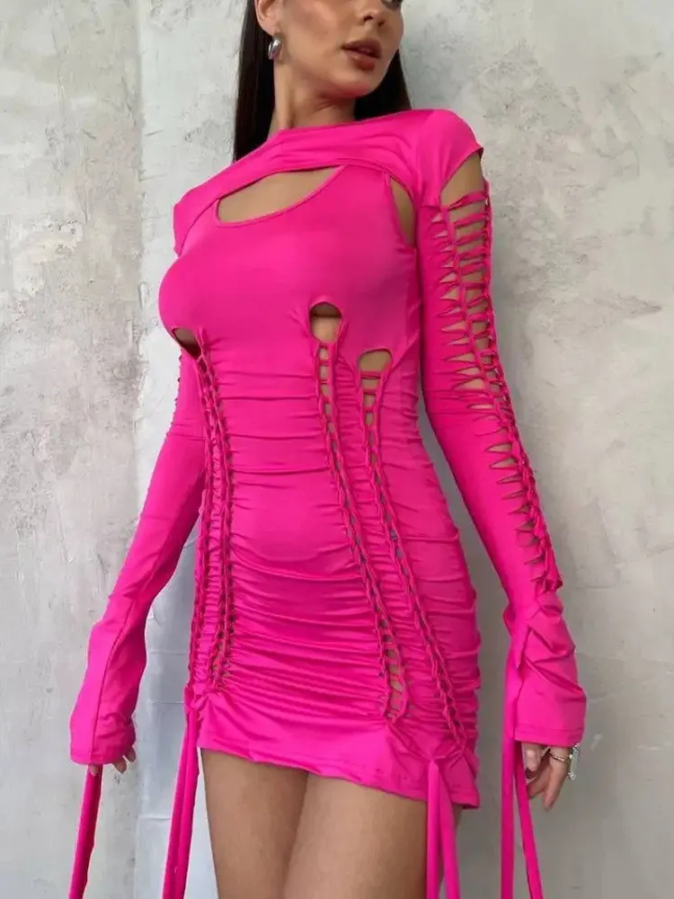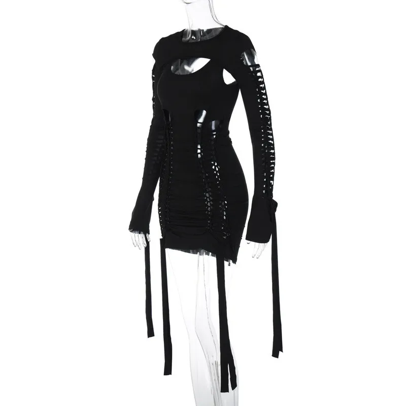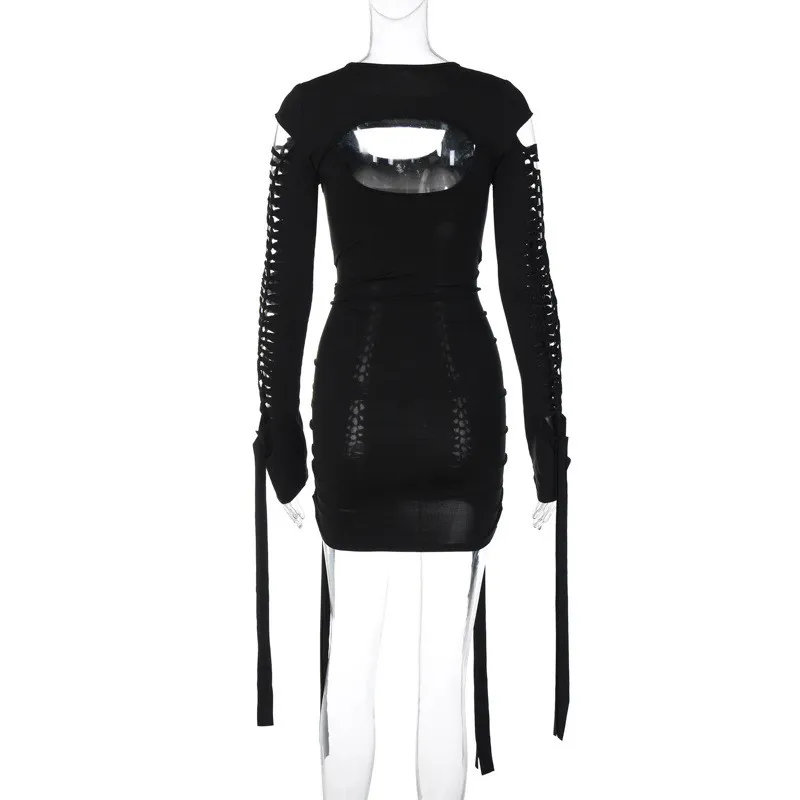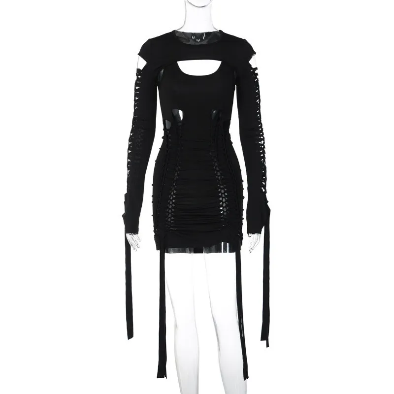 | Product Name | Women’s Sexy Hollow Out Long Sleeve Lace-Up Bodycon Dress |