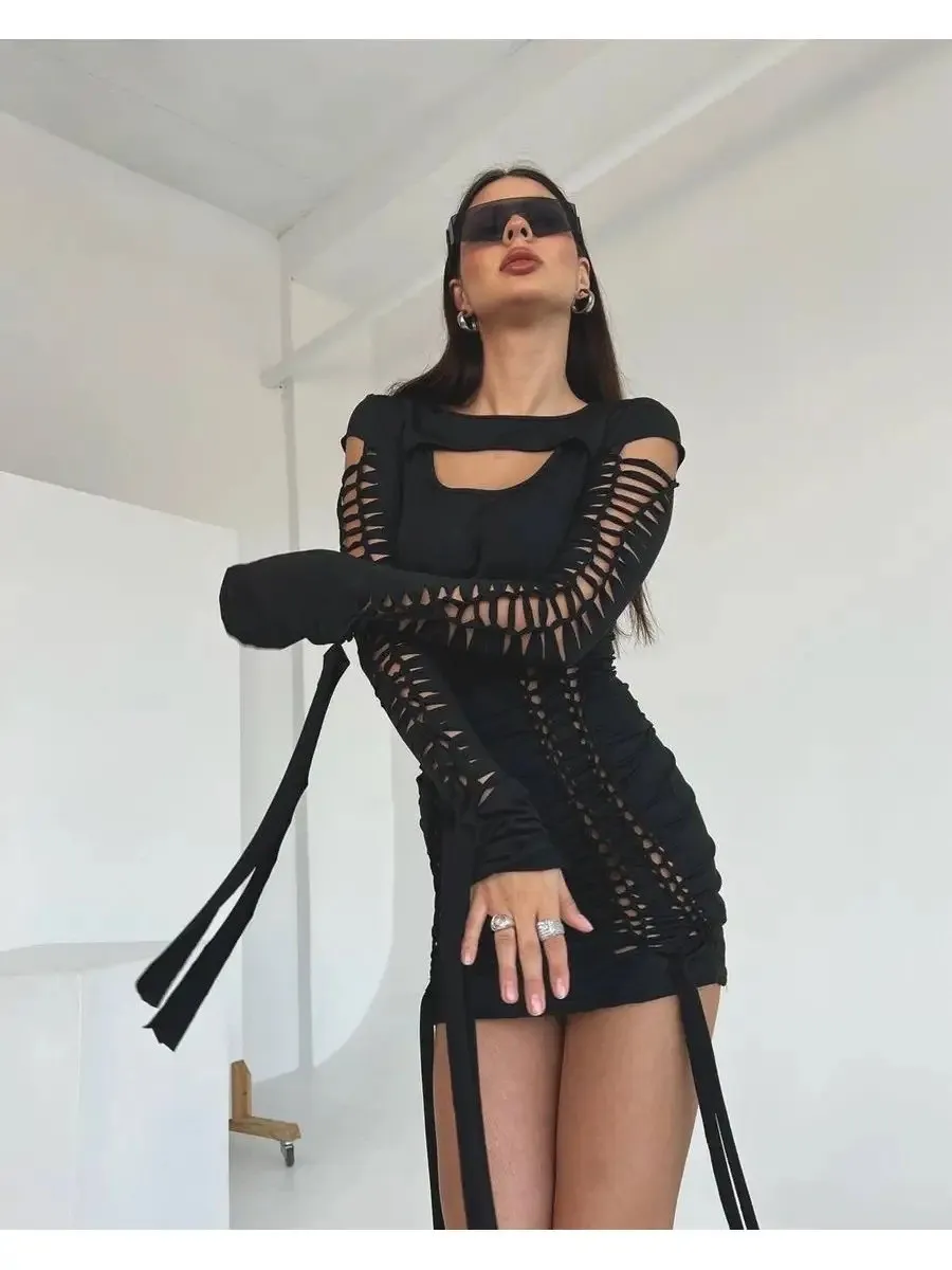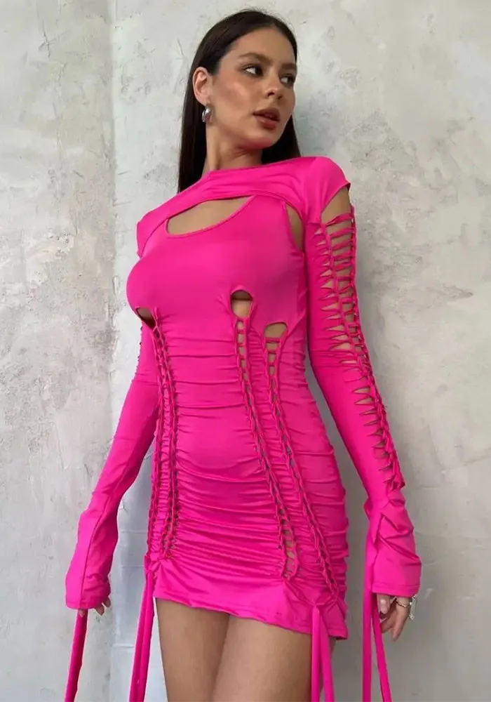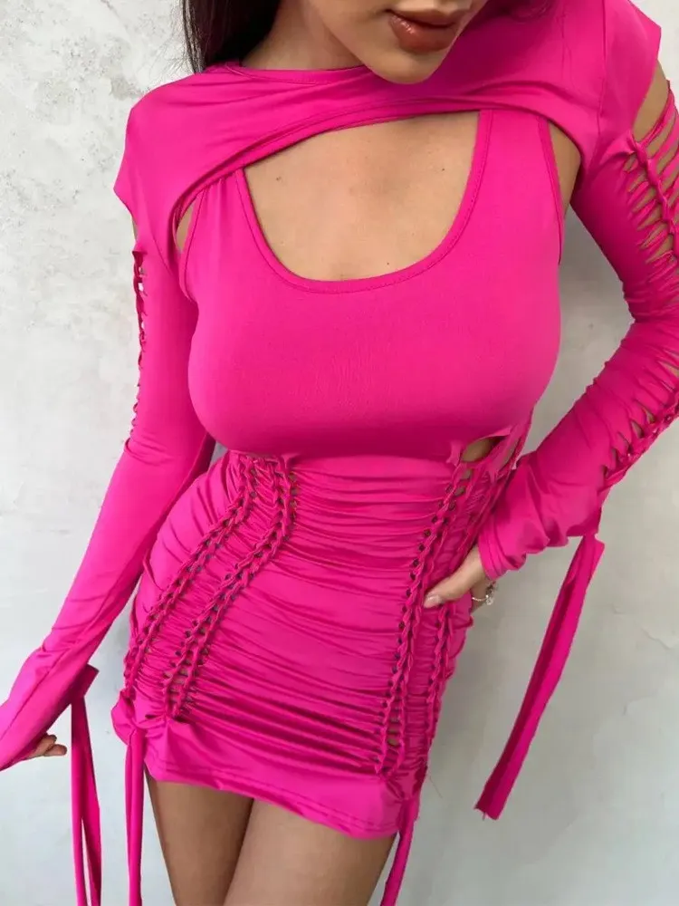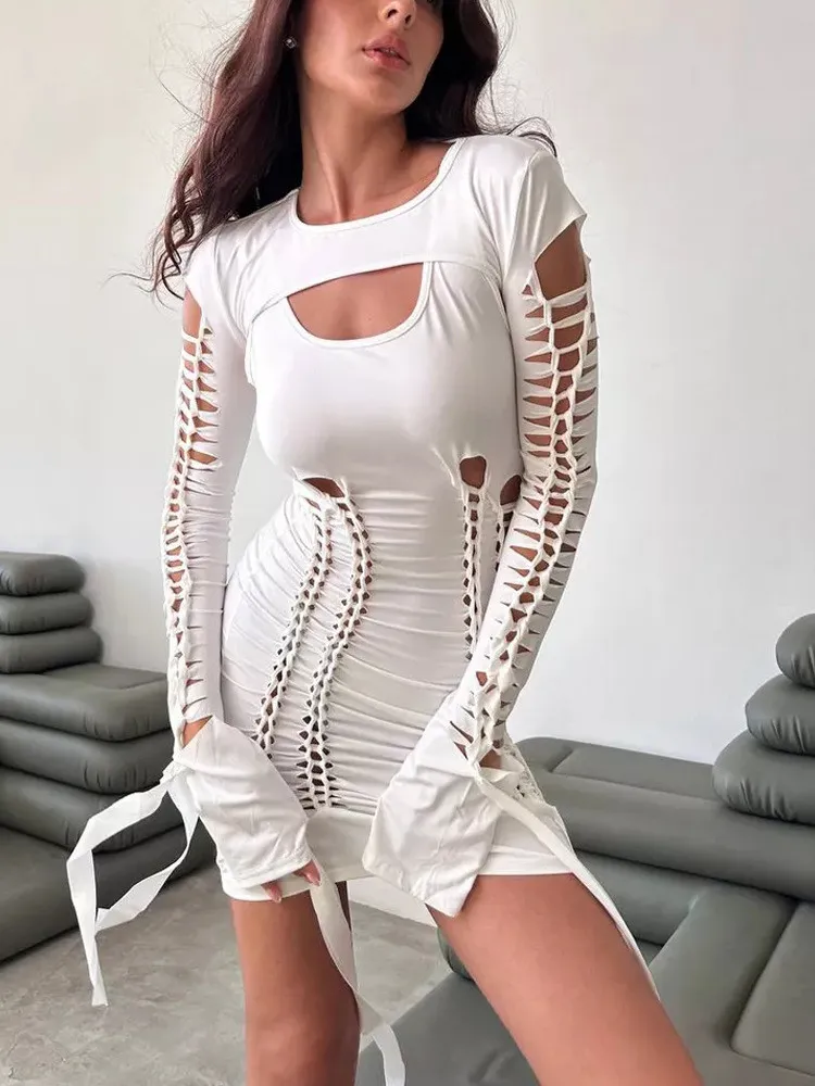 | Product Name | Women’s Sexy Hollow Out Long Sleeve Lace-Up Bodycon Dress |