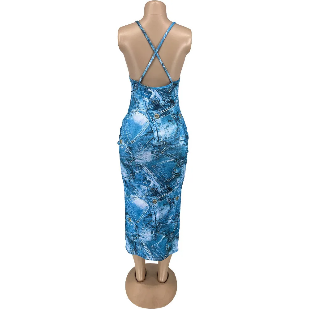 | Product Name | Women’s Sexy Print Straps Backless Slim Long Dress |