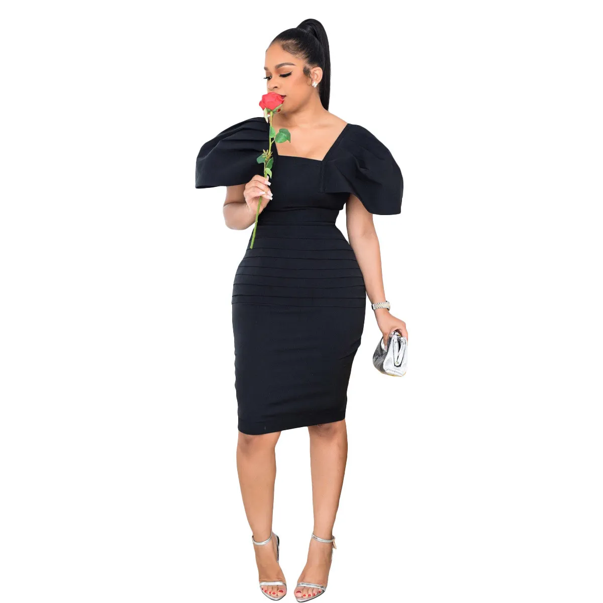 | Product Name | Women’s spring and summer square collar back invisible zipper slit office work dress |