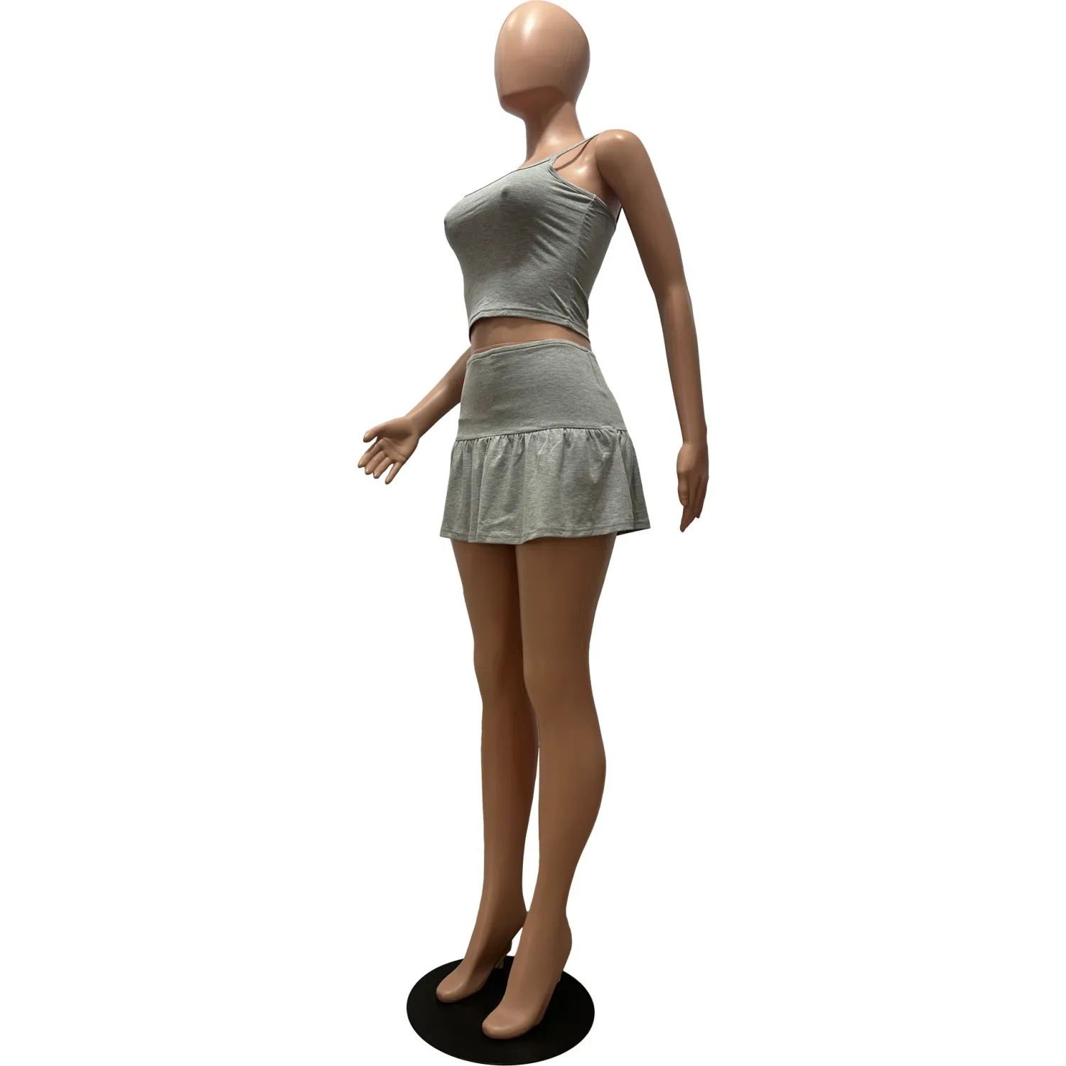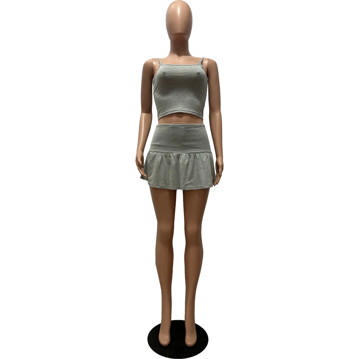 | Product Name | Women’s Summer Solid Color Casual Strap Vest Mini Skirt Set(With Underwear) |