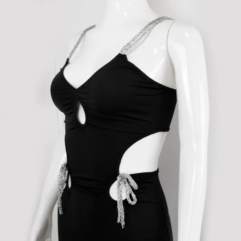 | Product Name | Women’s Summer Solid Color Ribbon Decorated Suspenders Hollow Out Low Back Dress |