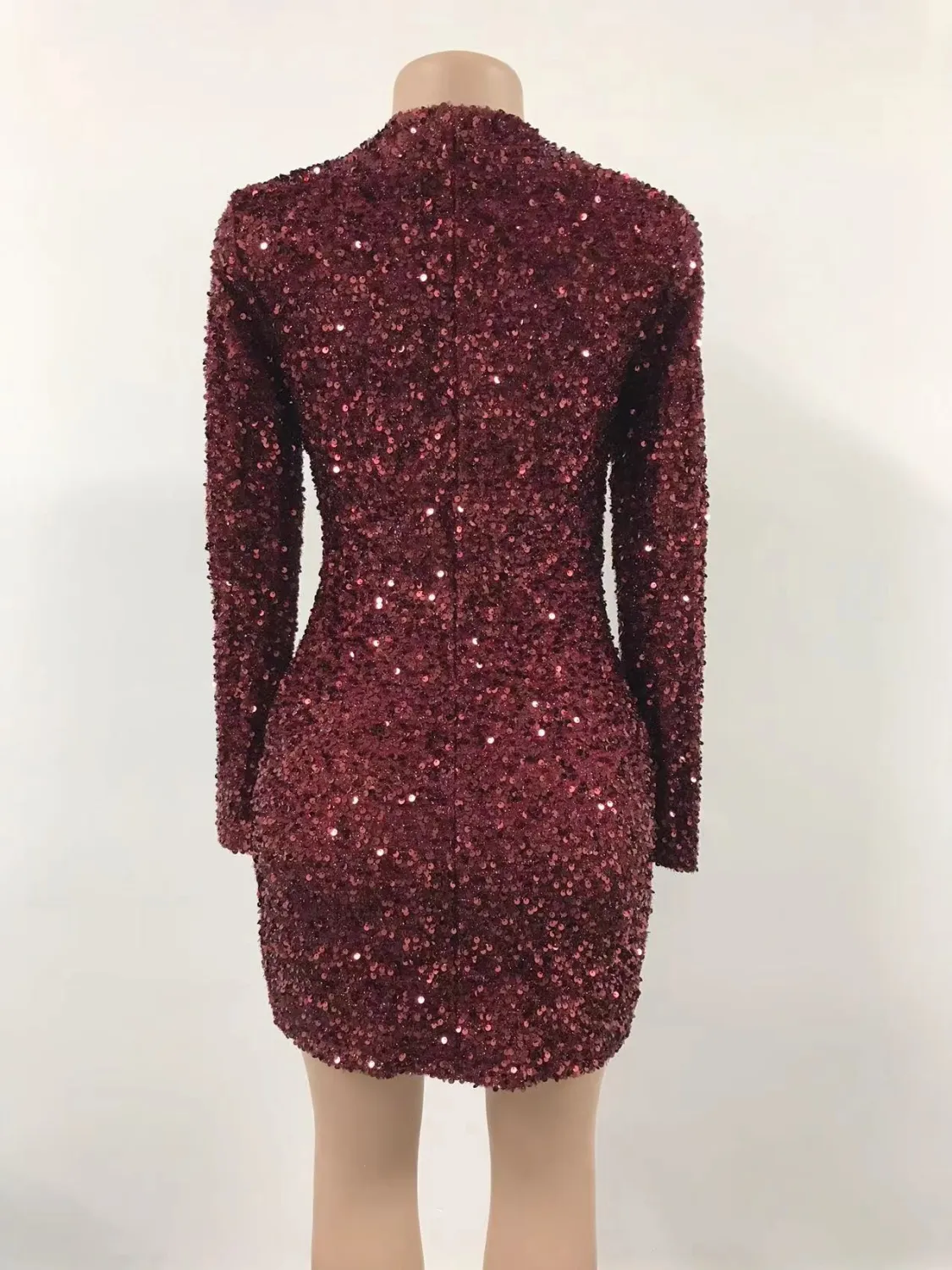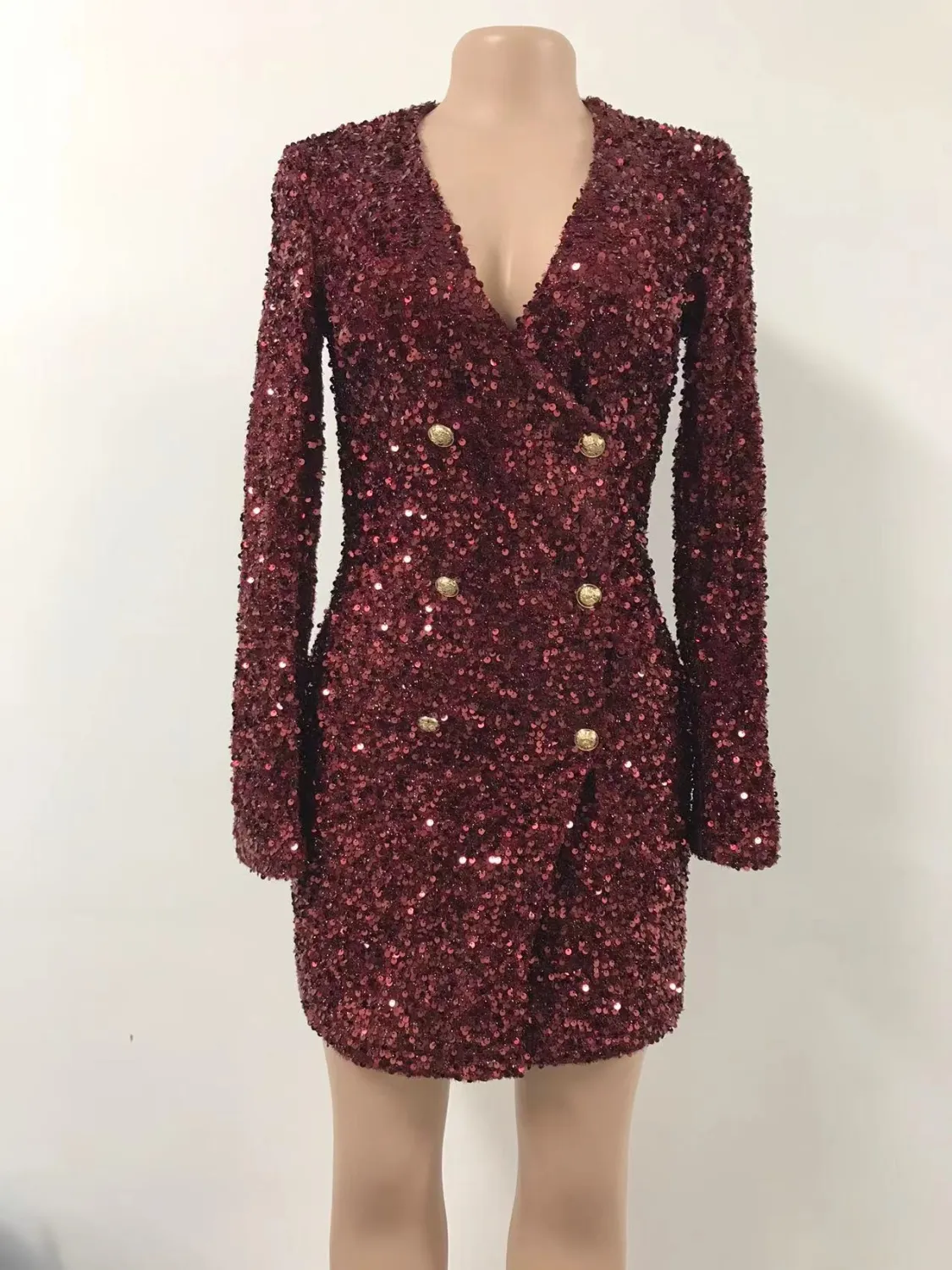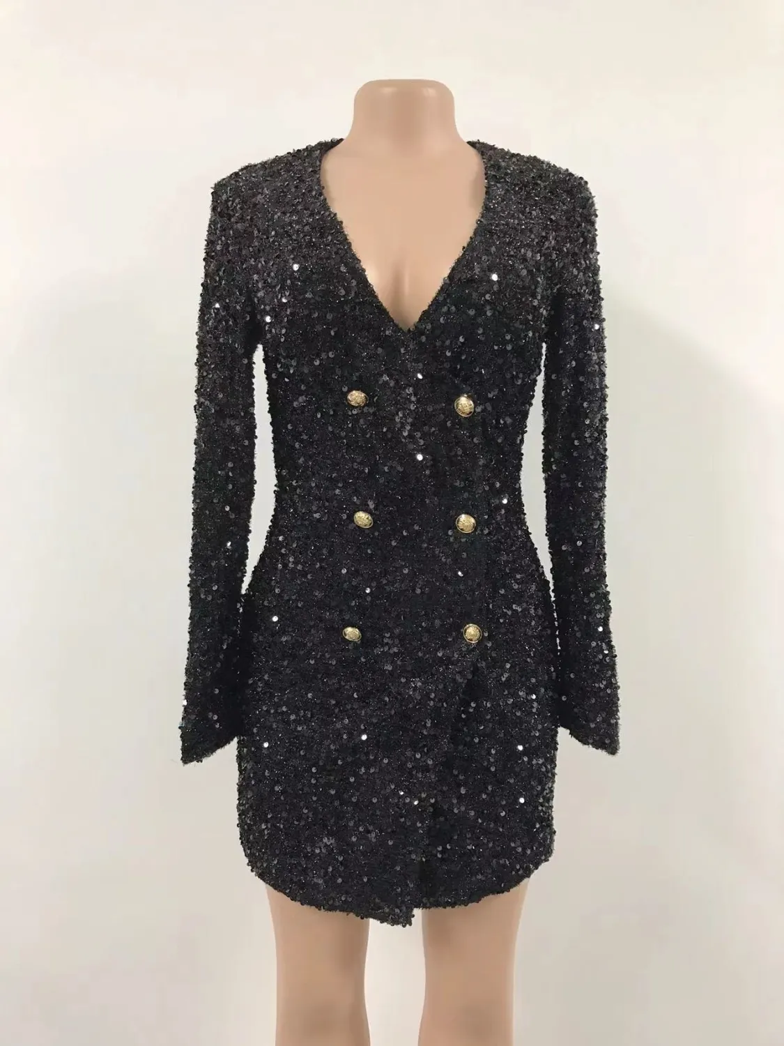 | Product Name | Women Sexy Black Sequins double breasted long sleeve career dress |