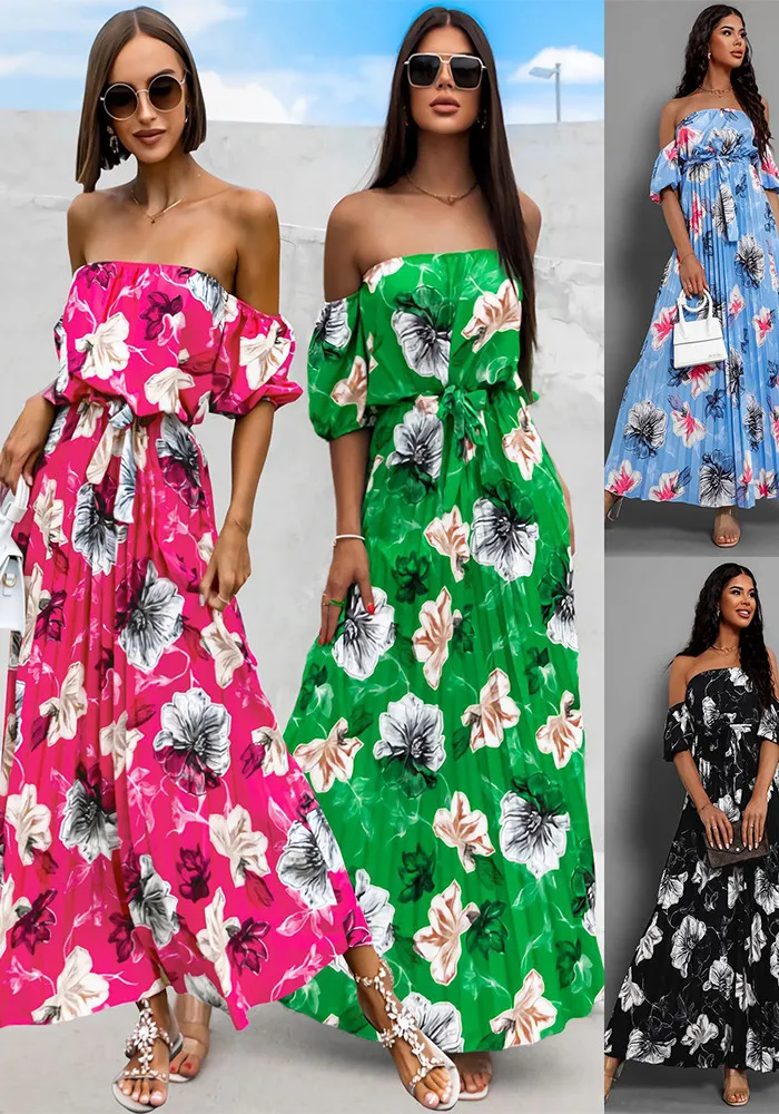 | Product Name | Women Sexy Off Shoulder Pleated Print Summer Print Long Dress |