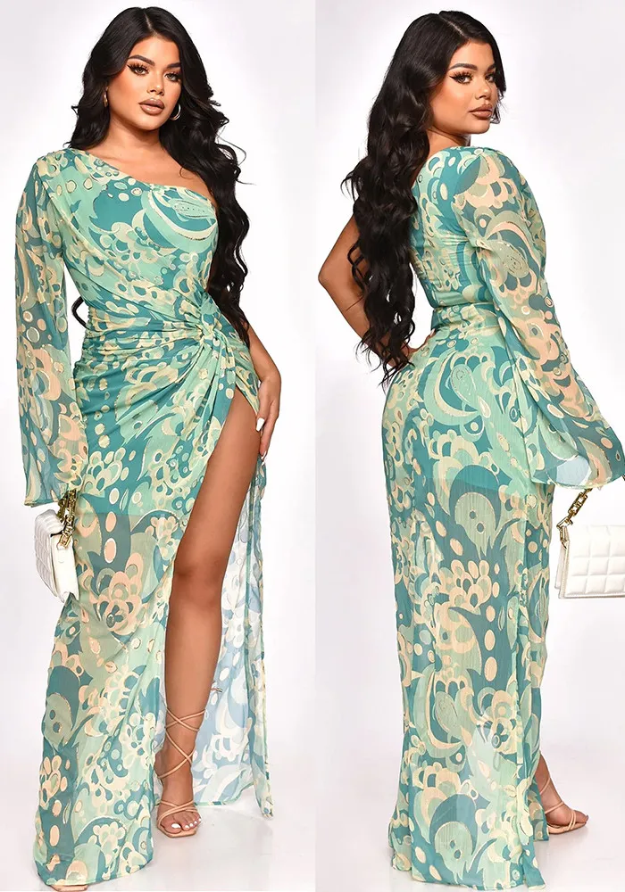 | Product Name | Women Sexy Printed Irregular One Shoulder Dress |