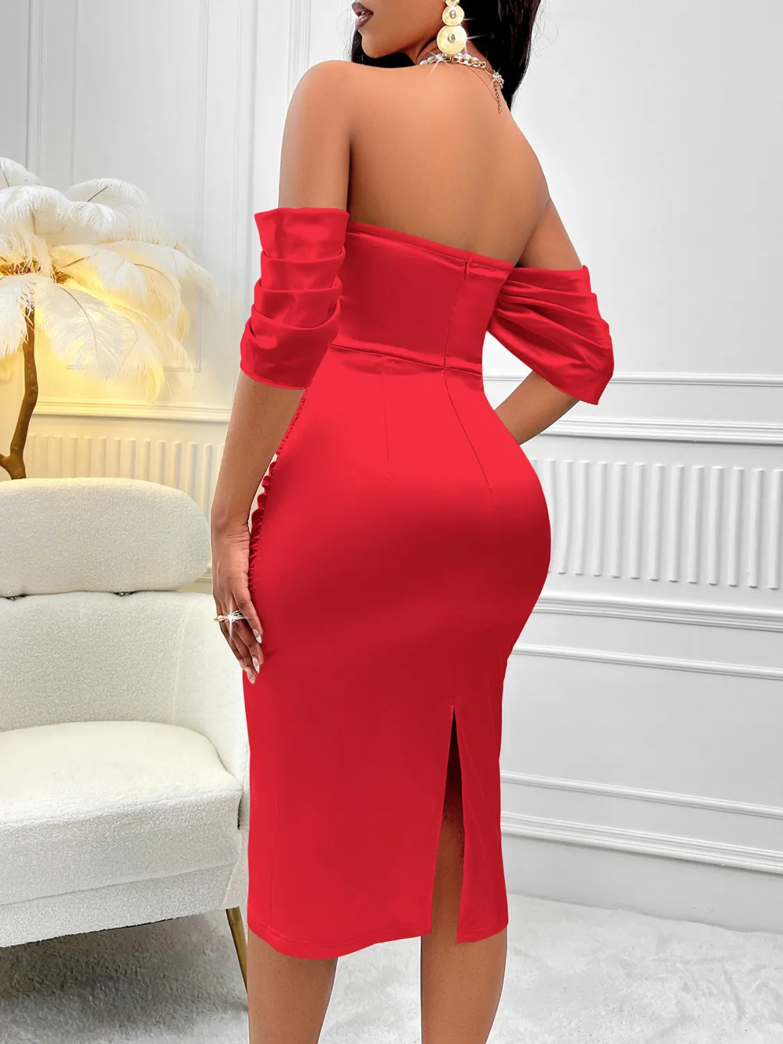 | Product Name | Women Sexy Summer Solid Off Shoulder Pleated Dress |