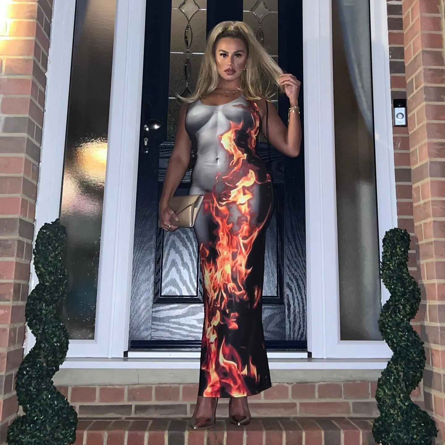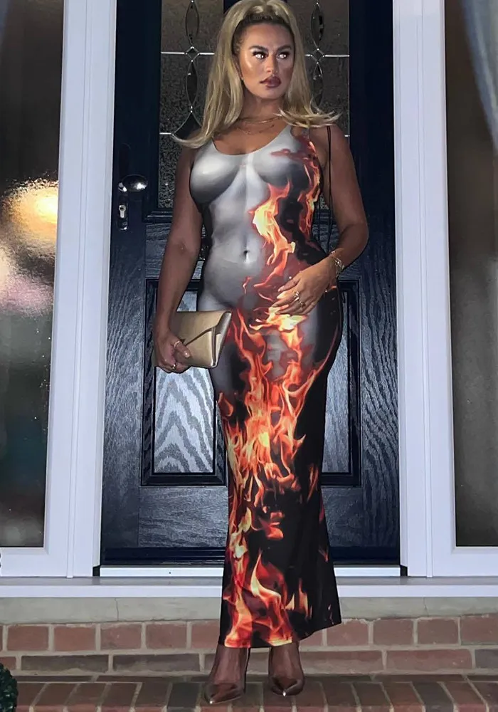 | Product Name | Women Sleeveless Flame Print Bodycon Dress |