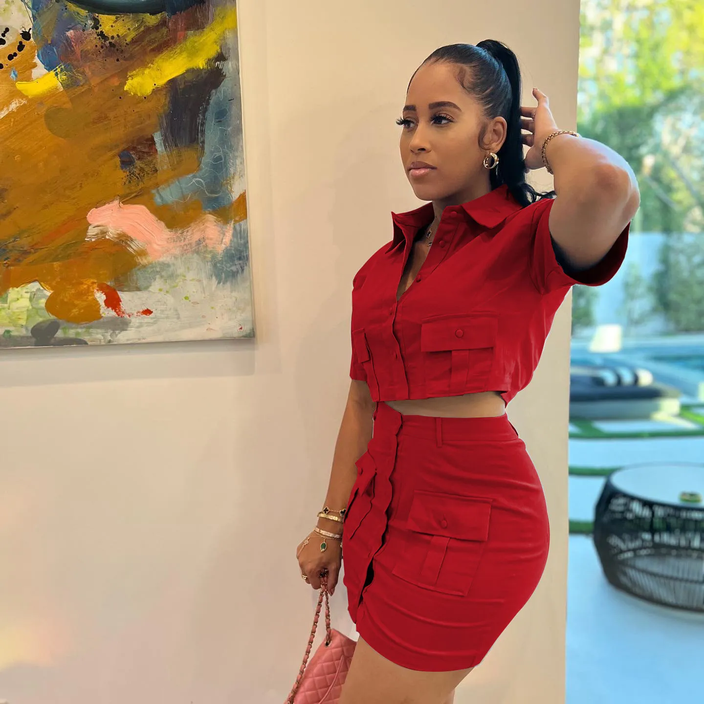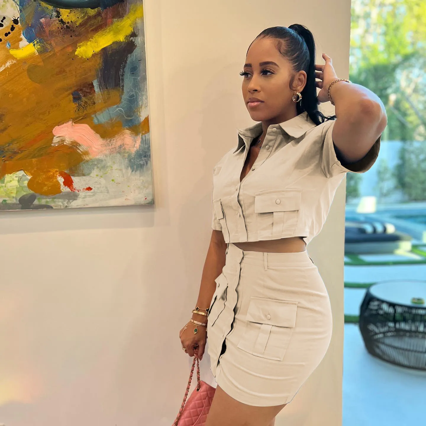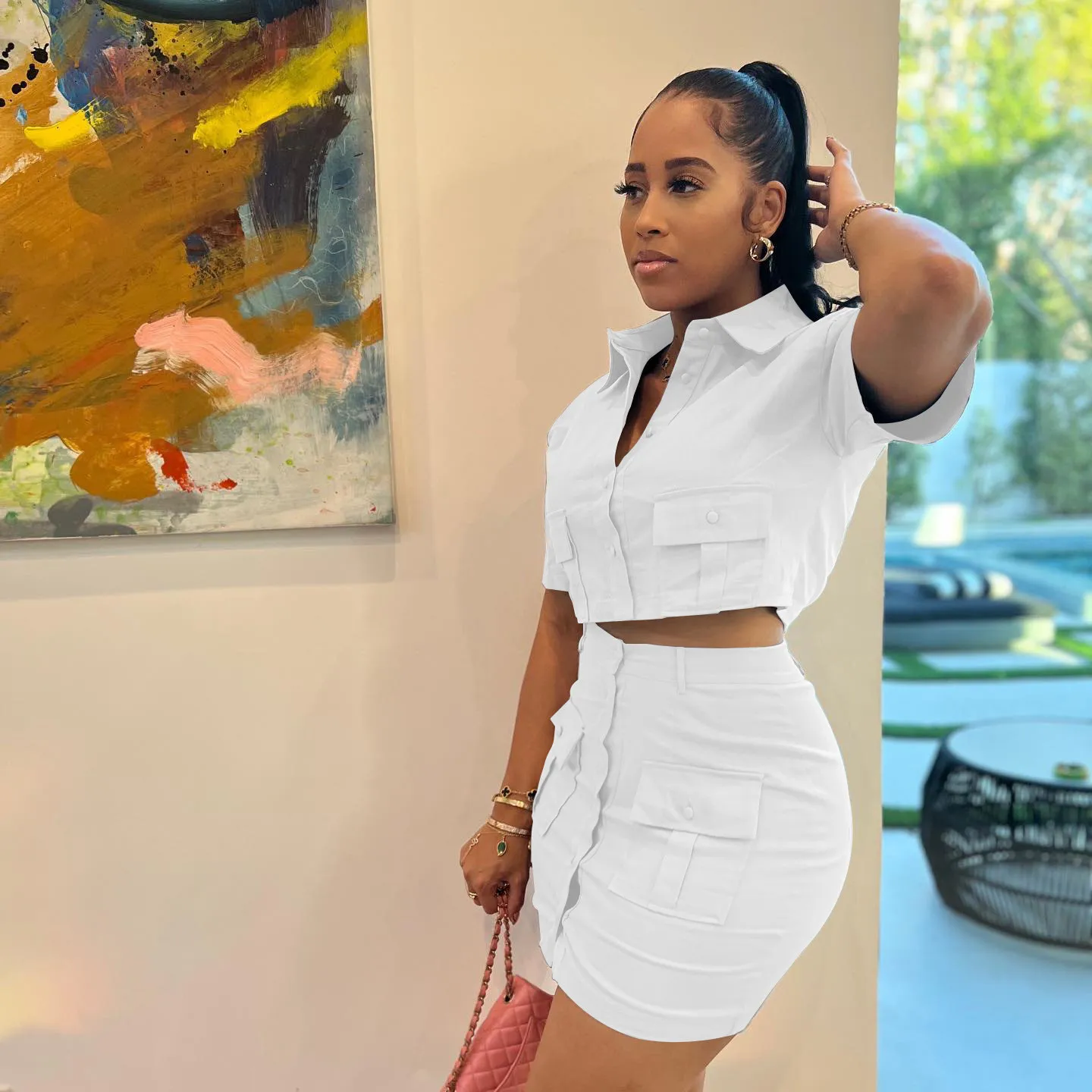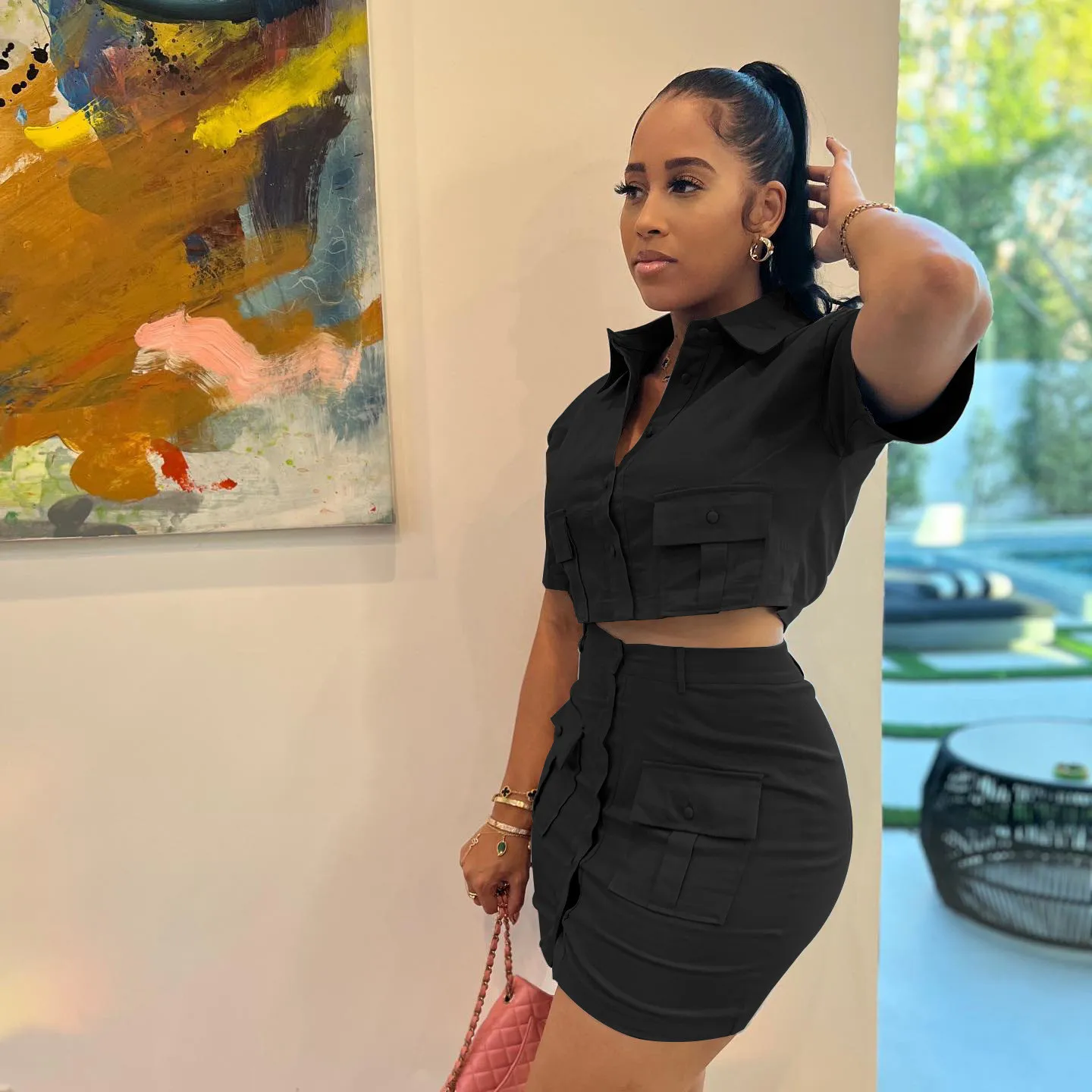 This Women Solid Button Pocket Top And Camouflage Skirt Two-Piece Set Design Made Of High Quality Polyster And Spandex Material. It Is Stretchy, Durable And Comfortable. It Come With The Top And Skirt Matching Set. Women’s Skirt Suit Sets Is a Great Alternative To One Piece Outfit. It Can Either Be Worn Together Or Individually, So You Can Combine Them Endlessly. Grab Different Two Piece Skirt Set Wholesale On Our Website a Women’s Clothing Store Online At Really Cheap Price And Enjoy The Fast Delivery.